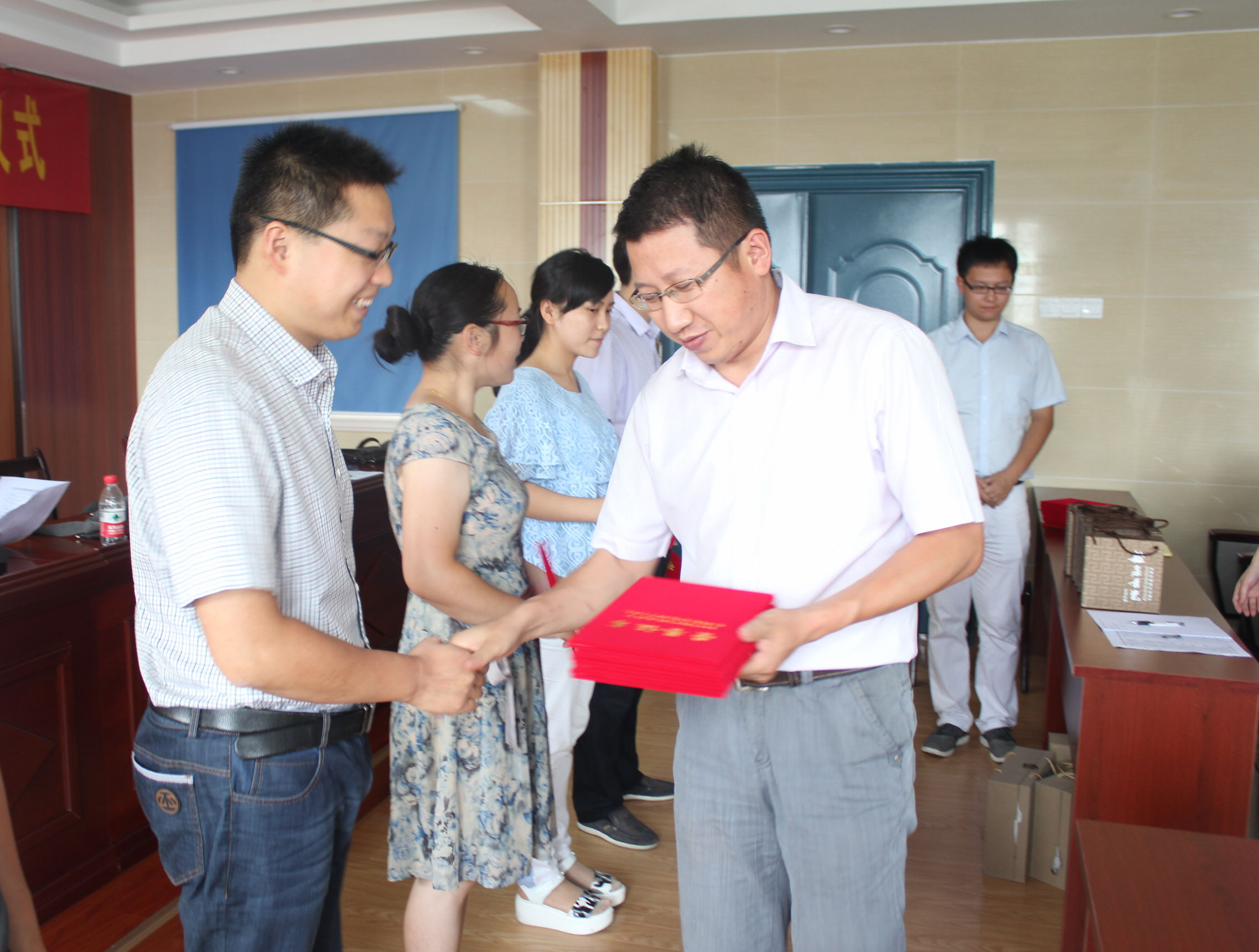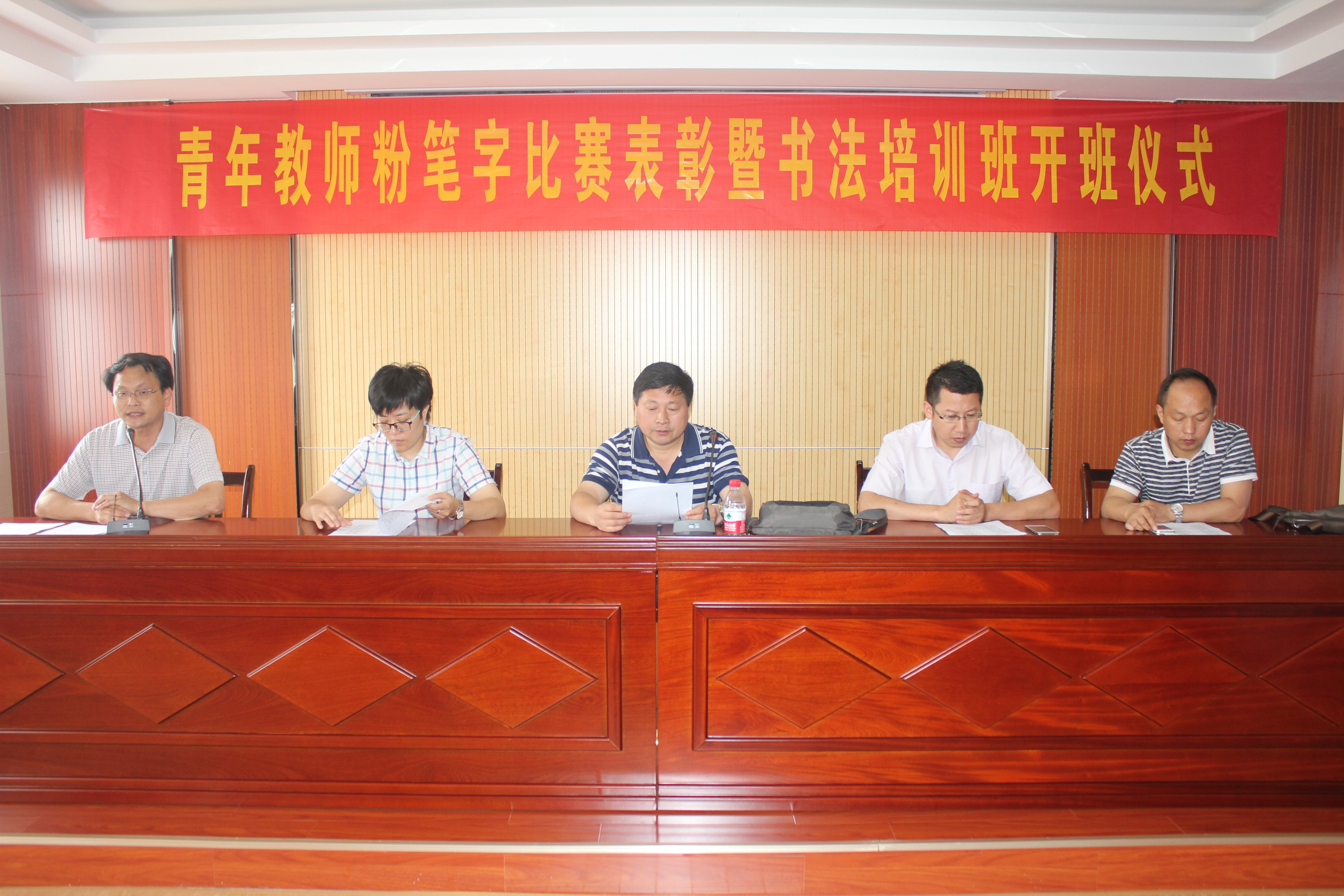 7月3日上午,青年教师粉笔字比赛表彰会暨书法培训班开班仪式在校综合楼五楼多媒体会议室举行。校长钟士标、副校长叶叶、团委书记徐盼、书法班辅导教师王勇以及全体青年教师参加了会议,会议由教科室主任钱军主持。