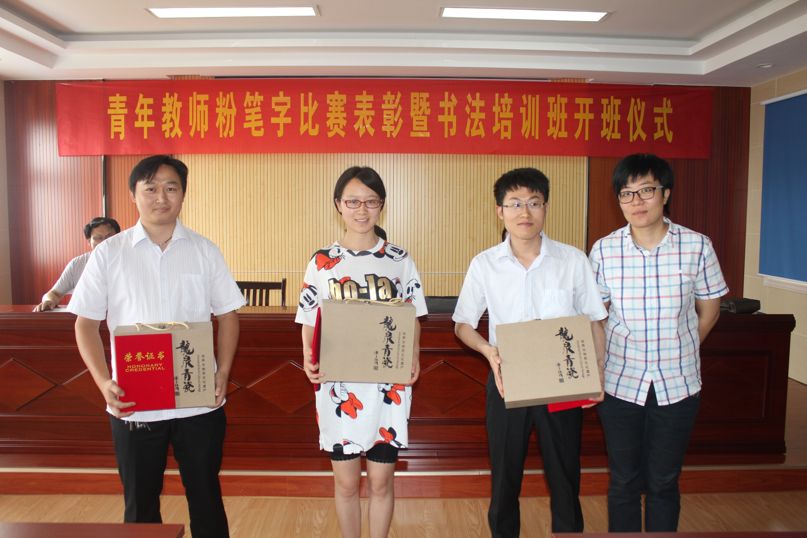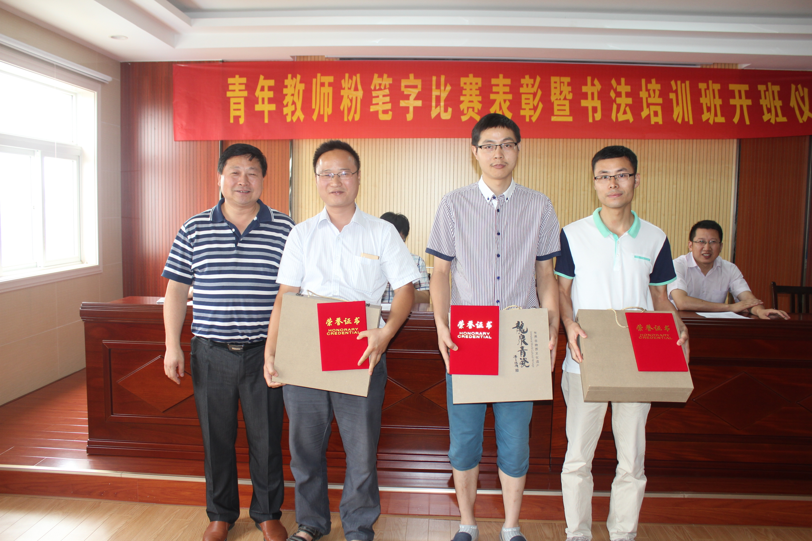 会上,叶校长宣读了青年教师粉笔字比赛的获奖名单。钟校长、叶校长、徐书记分别向一、二、三等奖获奖者颁发了获奖证书及奖品并合影留念。