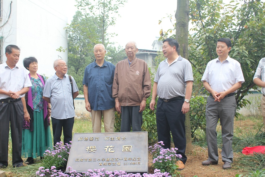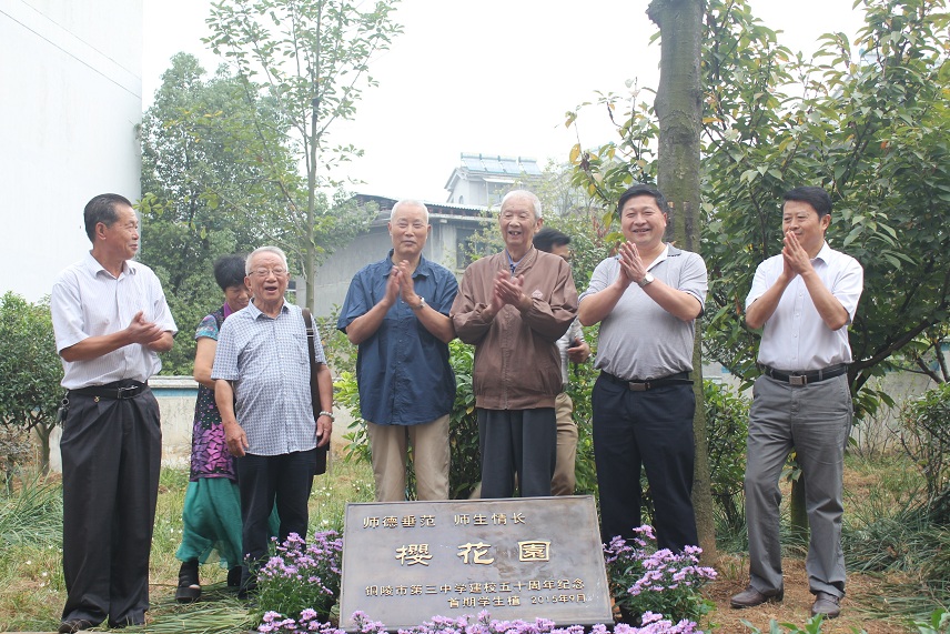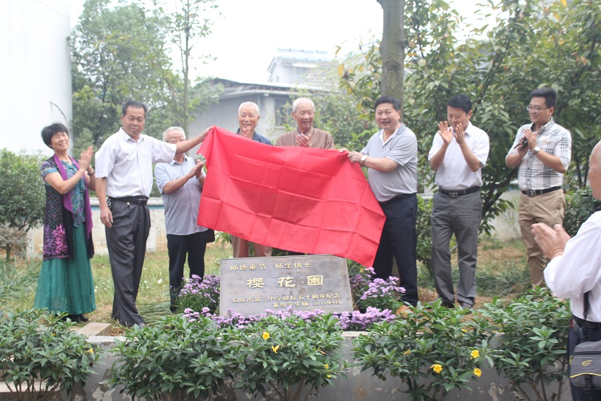 本校讯 9月20日上午,阳光灿烂,铜陵三中首批校友80余位汇聚三中校园,共同为首批校园为建校50周年捐赠的樱花园揭幕。