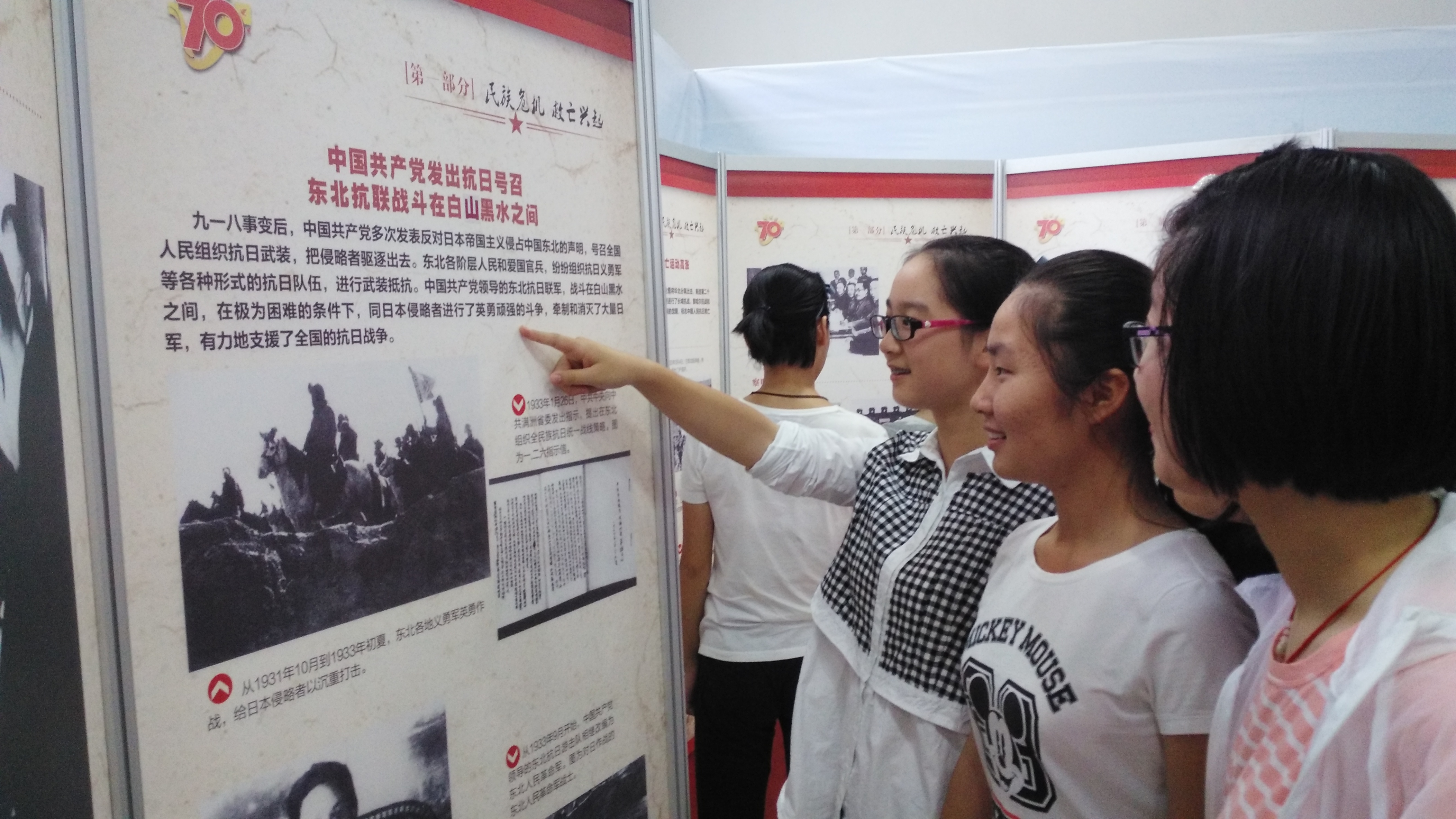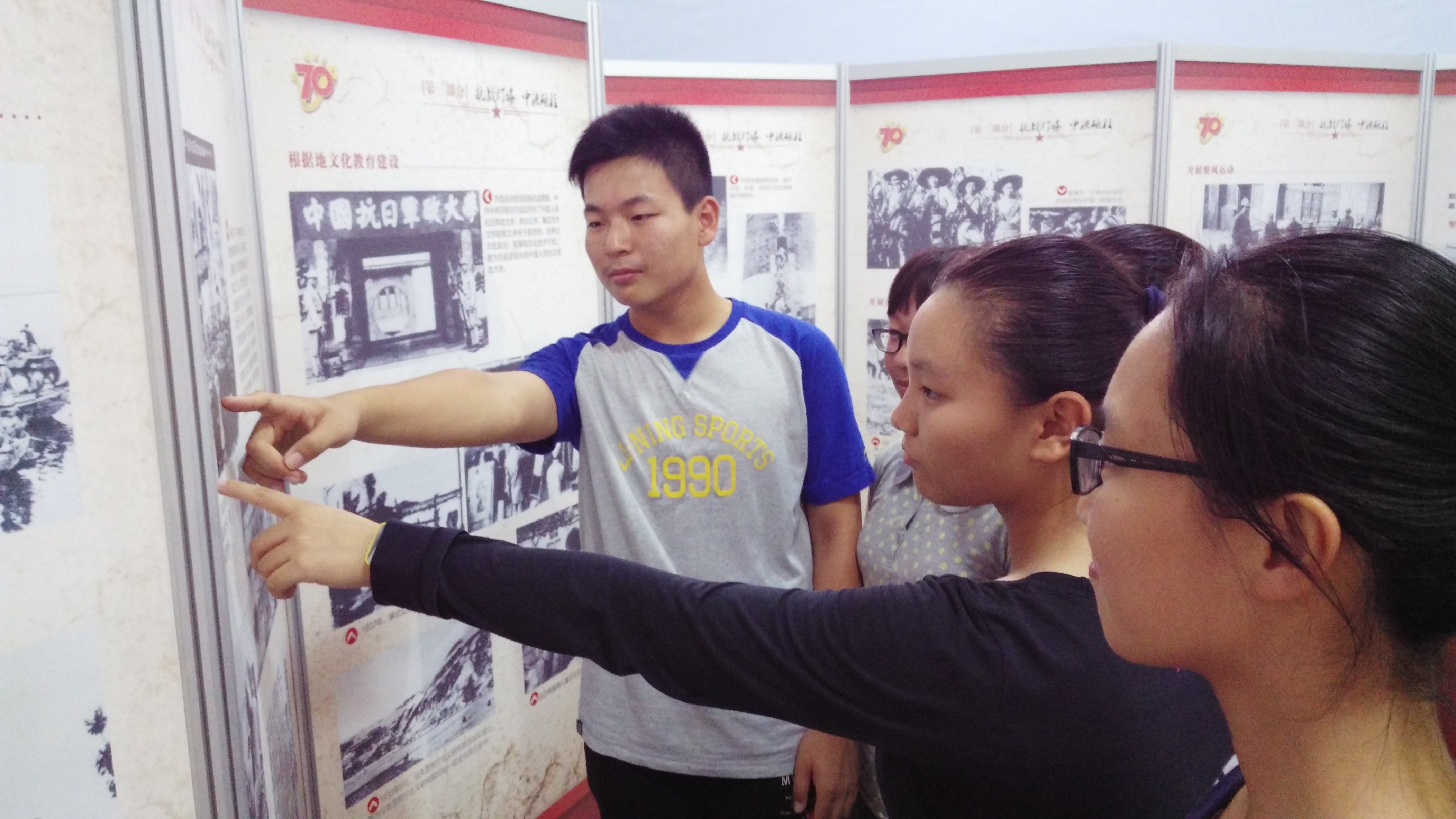 9月24日下午,市三中实验小班一百多人在学校政教处的安排下,前往市科技馆参观《铭记历史,缅怀先烈》抗日战争胜利70周年图片展,在短短两节课时间里,大家安静地排着长队,在老师的带领下,有序地进入展厅,全神贯注地观看一幅幅珍贵的历史照片。从1937年 9月18日,日本悍然发动全面侵华战争,大肆在中国的土地上烧杀抢掠,苦难的中国人民饱受战争的痛苦,劳动人民颠沛流离,居无定所,美丽的山城重庆、繁华的首都南京一度被催残得面目全非,看到日本侵略者“南京大屠杀”惨绝人寰的暴行,同学们失语惊叹、义愤填膺,心情非常沉重。然而让人欣慰的是,中国人民并没有被打倒,在中国共产党的努力下,形成了民族统一战线,团结一致对外抗日,通过艰苦的八年抗战,中国人民终于战胜了日本法西斯,取得了抗日战争的伟大胜利。