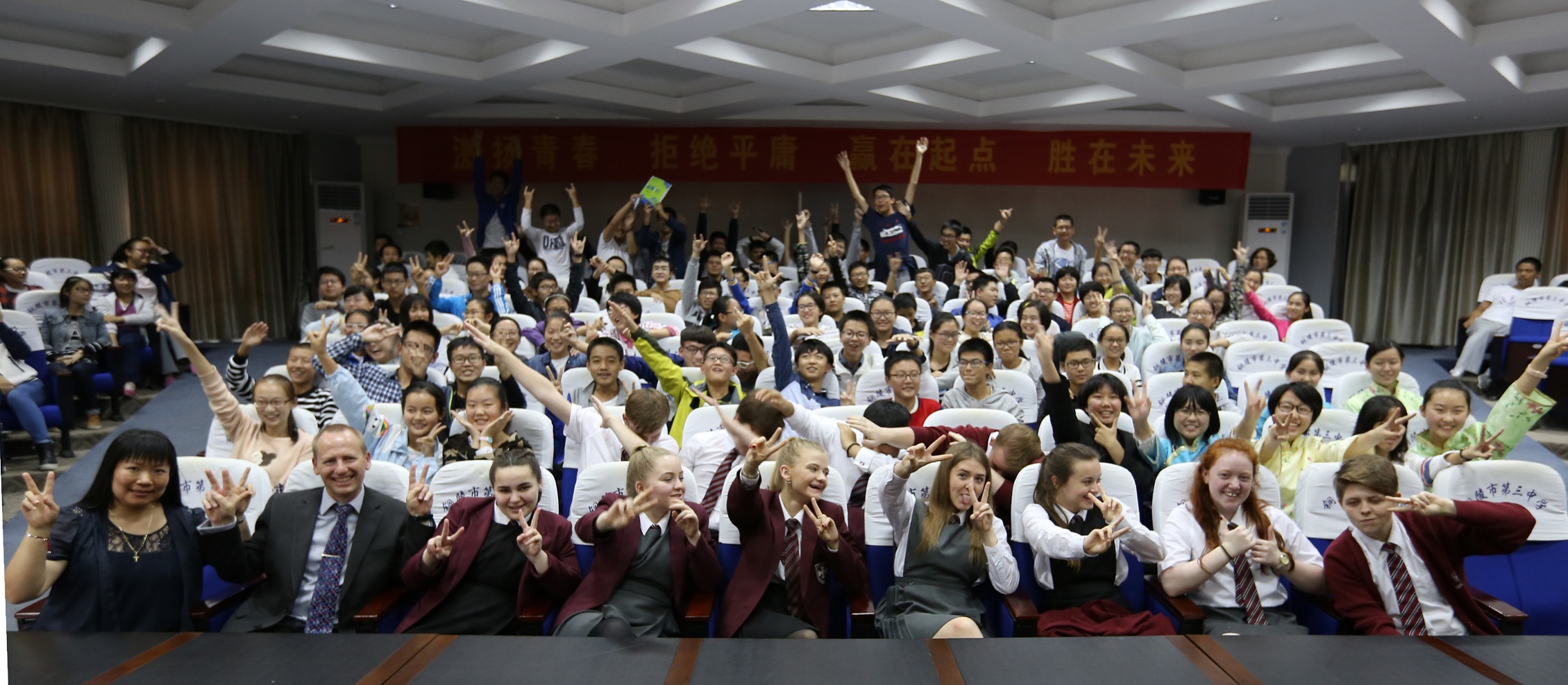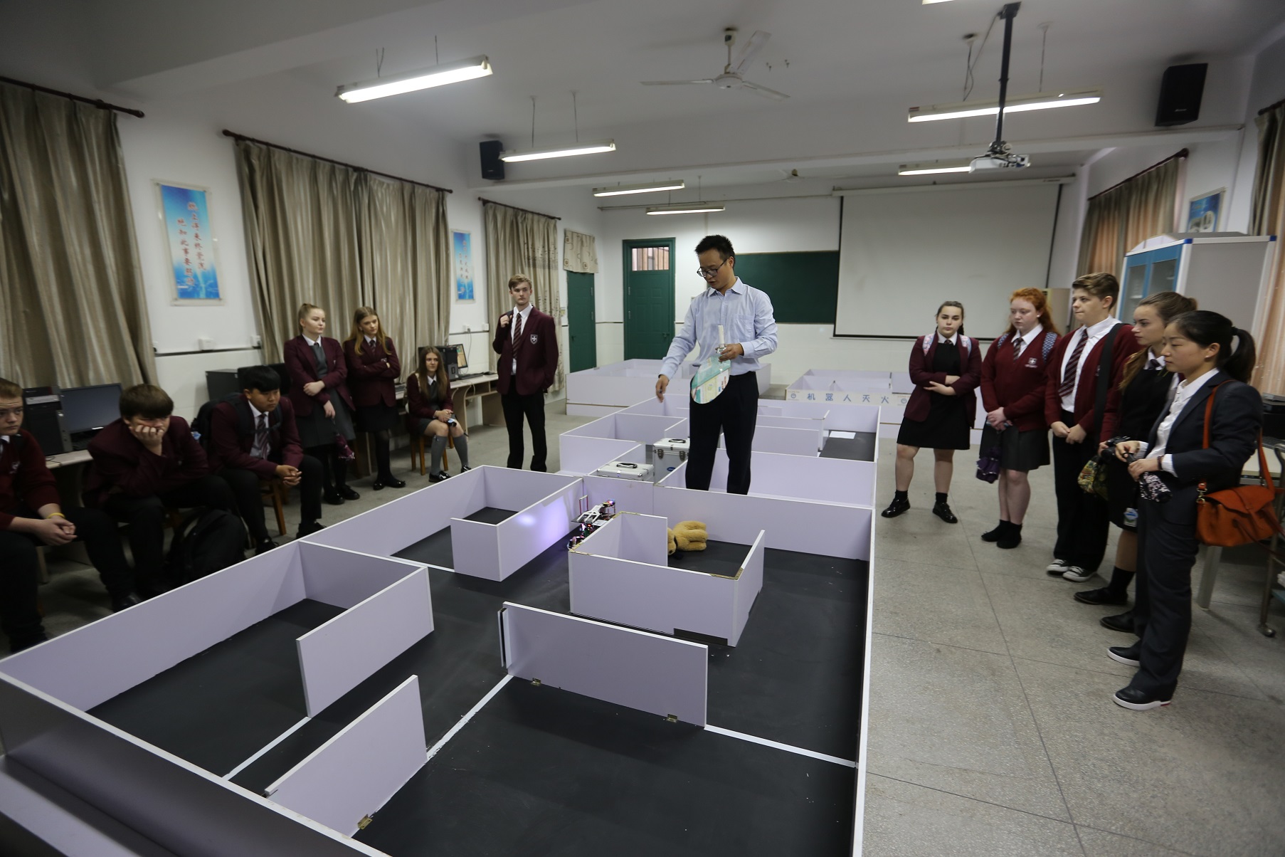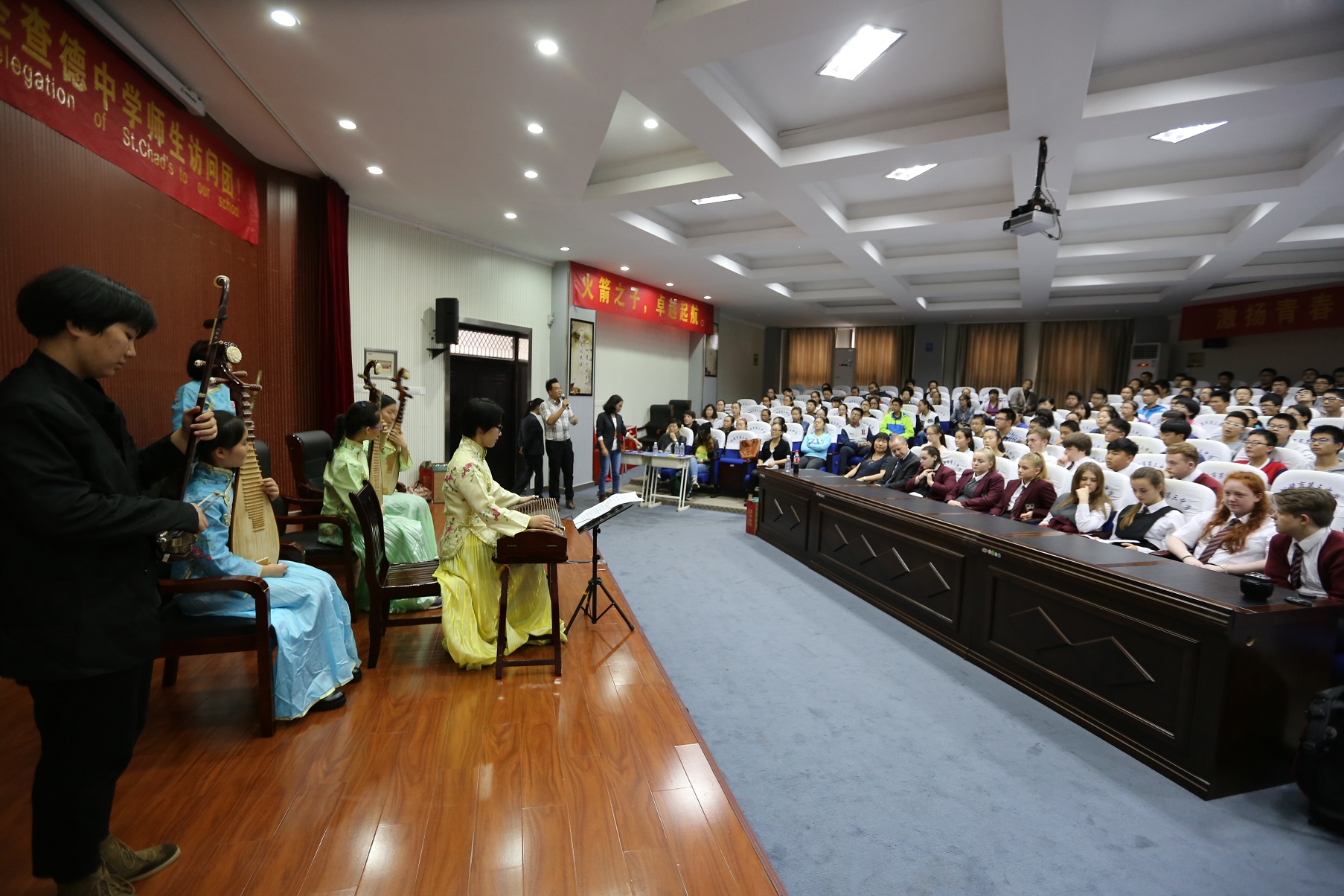 本次访问期间,副校长叶叶陪同英国的师生们参观了体育馆、植物园、生态馆、校史馆、机器人工作室等学校场所,三中的人文环境、书香气息、科技氛围、班级文化,学生的热情大方等都让前来参观的圣查德中学师生们赞不绝口,为了有更多的交流的机会,学校安排他们深入班级参与了学校的英语课堂。在20日下午,两校师生举行了文娱联欢,双方各自演出了精彩的节目,受到了观众们的热烈欢迎,在互动过程中,中外学生之间的友谊进一步加深,也促进了两国中学生之间的文化交流。客人们感叹我校学生活动的丰富多彩,并对指导老师和学生的能力表示钦佩。