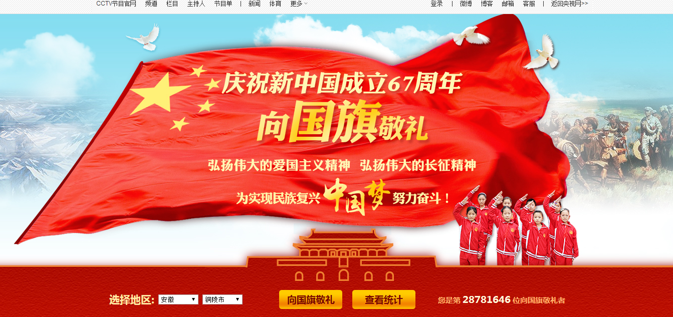 本次活动由中央文明办、教育部、共青团中央、全国妇联、中国关工委发起,通过网络平台,联合开展“向国旗敬礼”网上签名寄语活动。活动以庆祝中华人民共和国成立67周年为契机,结合纪念中国工农红军长征胜利80周年,组织引导广大未成年人在网上面向国旗敬礼并签名寄语,积极参与网下教育实践活动,学习和弘扬伟大的爱国主义精神和长征精神,培育和践行社会主义核心价值观,树立听党话、跟党走的信念,抒发热爱祖国、祝福祖国的情感,表达为实现民族复兴中国梦努力学习、全面发展的远大志向。