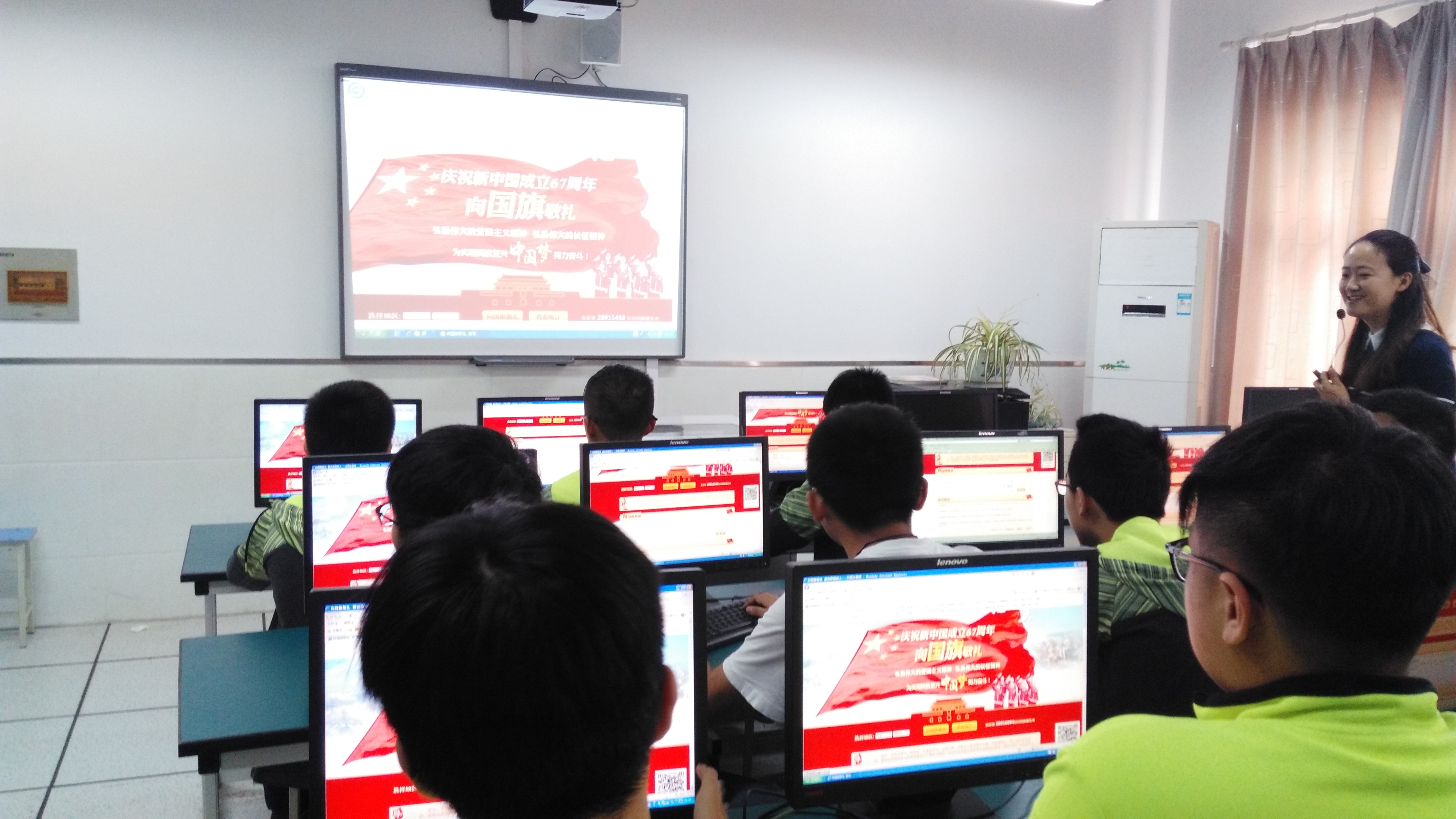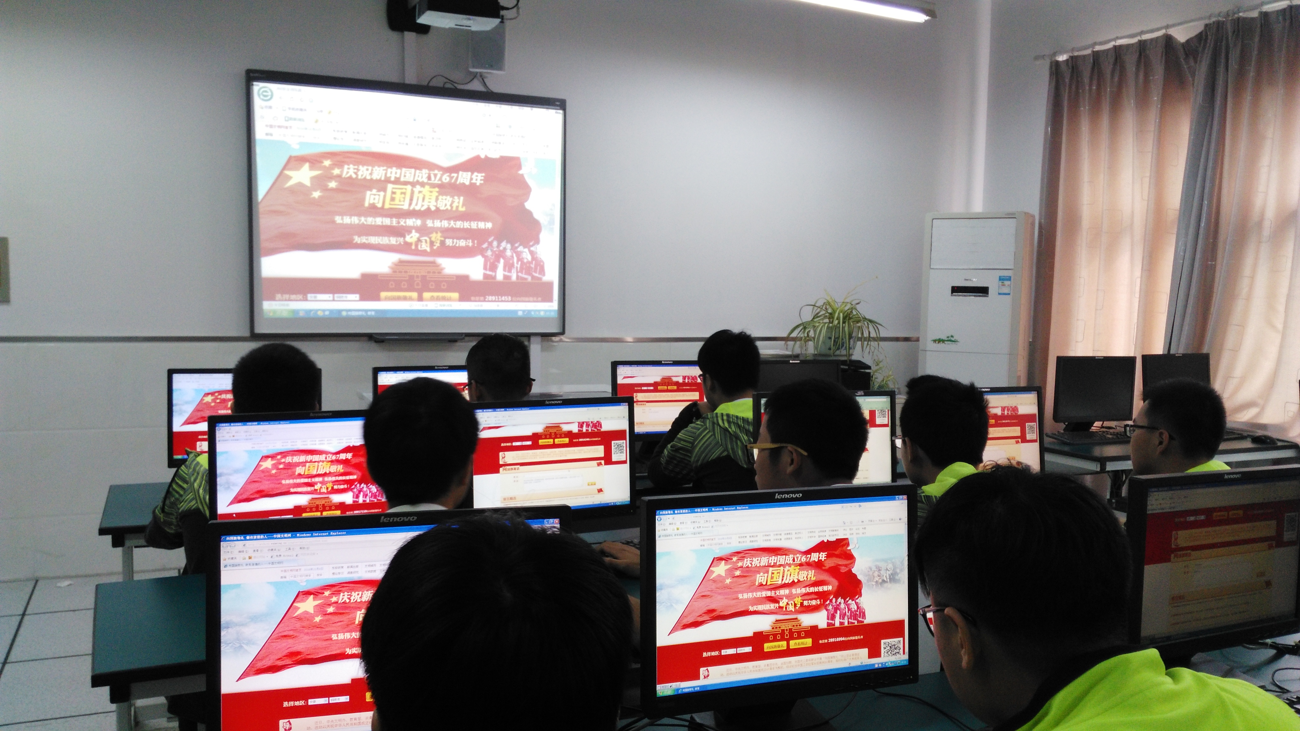 10月8日上午,我校政教处组织开展了“向国旗敬礼”网上签名寄语活动。在微机室,同学在老师的布置下,静静地打开中国文明网,在点击“向国旗敬礼”庆祝新中国成立67周年鲜红的页面后,大家纷纷在寄语栏里留言,写下了对祖国深深祝福,祝愿祖国欣欣向荣,繁荣昌盛。