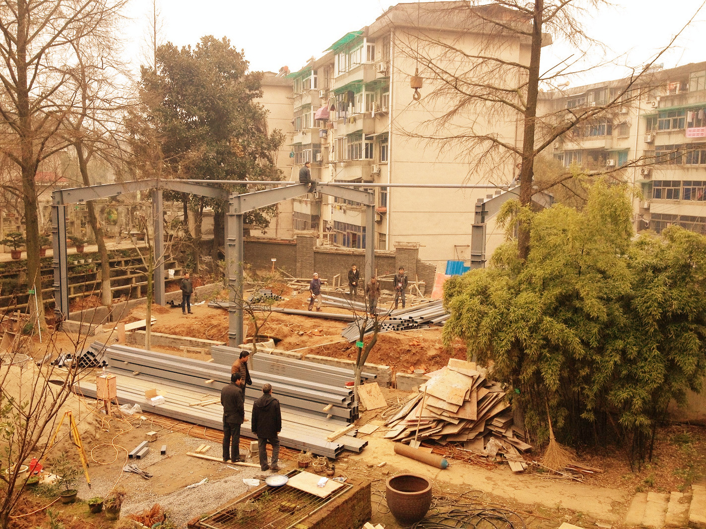 本校讯 日前,校植物园温室改造正在进行,改造后的温室将更加美观和实用。据了解,为了保持植物园原貌和生态植被,在前期规划设计中,施工建设单位特地给古树做了让步并进行了养护。