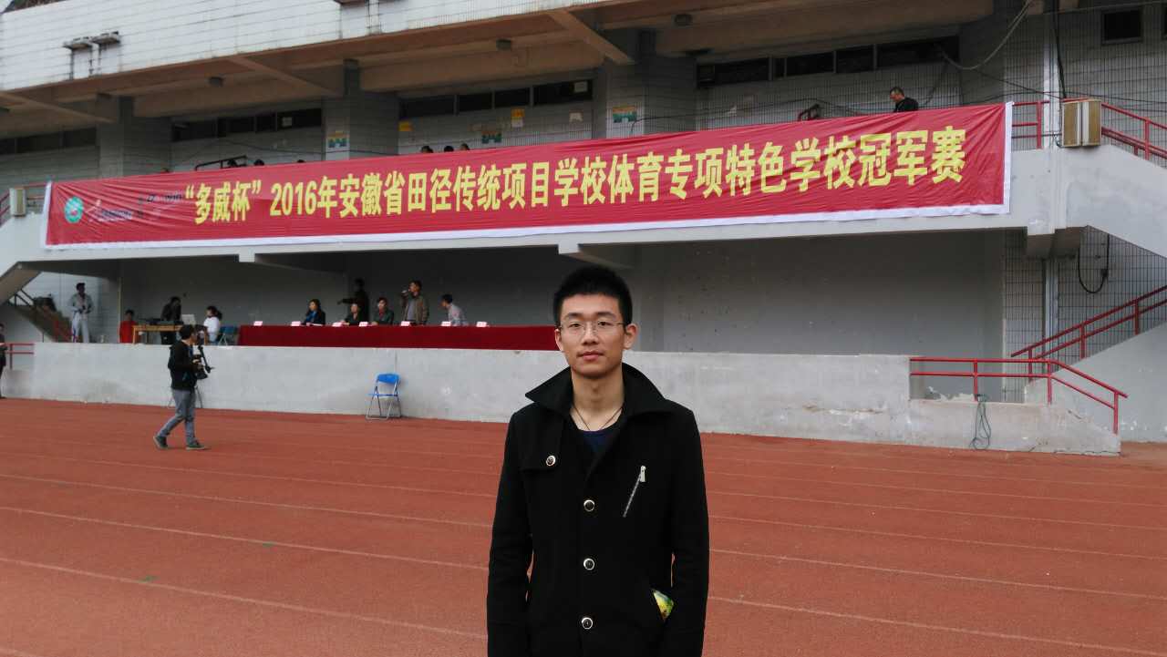 2016年11月17日,在合肥举行的安徽省田径传统项目学校冠军赛上,我校高三(11)班周鸿威同学奋勇拼搏,经过预赛,在男子高中组100米决赛中,以电计时11秒49的成绩获得第三名,超过国家二级运动员标准0.25秒。这样,按照高校高水平运动员招生要求(国家二级运动员及省级单项比赛前三名),周鸿威同学将有资格参加明年1月份全国近200所著名高校的高水平运动员田径项目招生考试。