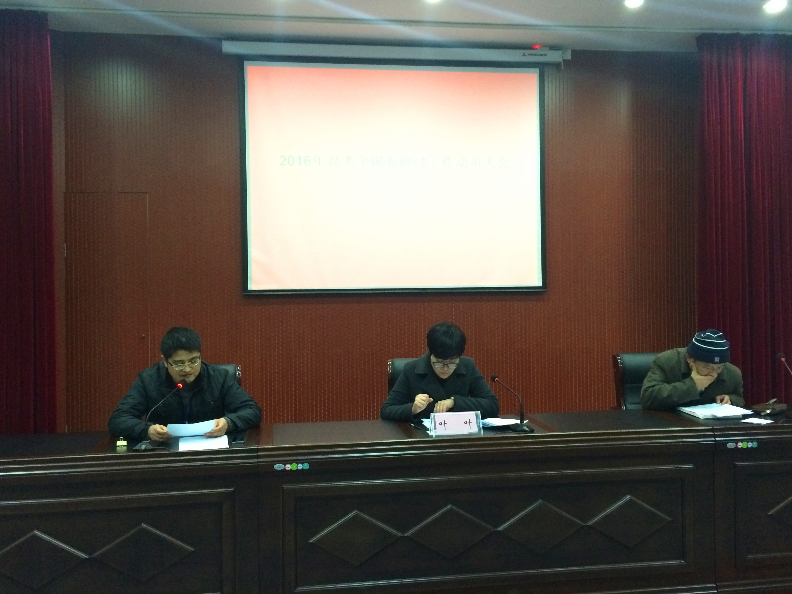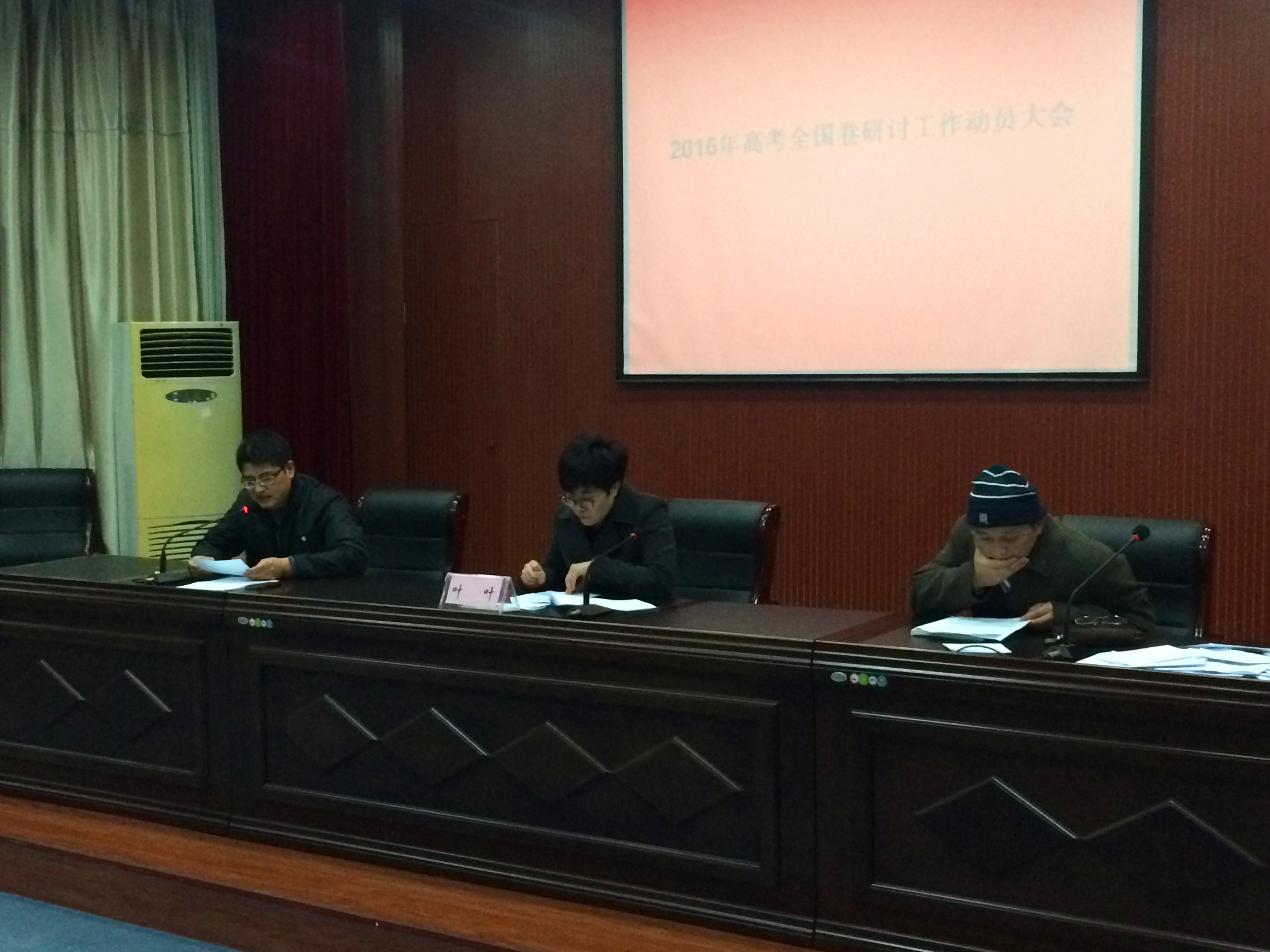 2016年起,安徽省普通高校招生统一考试将使用全国卷,为更好总结2015年高考经验,把握2016年高考的新形势、新变化,1月13日下午,我校在校多功能厅召开2016年高考全国卷研讨工作动员大会。会议由教务处主任张尤俊主持,副校长叶叶发表重要讲话,教务处副主任江选安及全体教师出席并参加了本次会议。