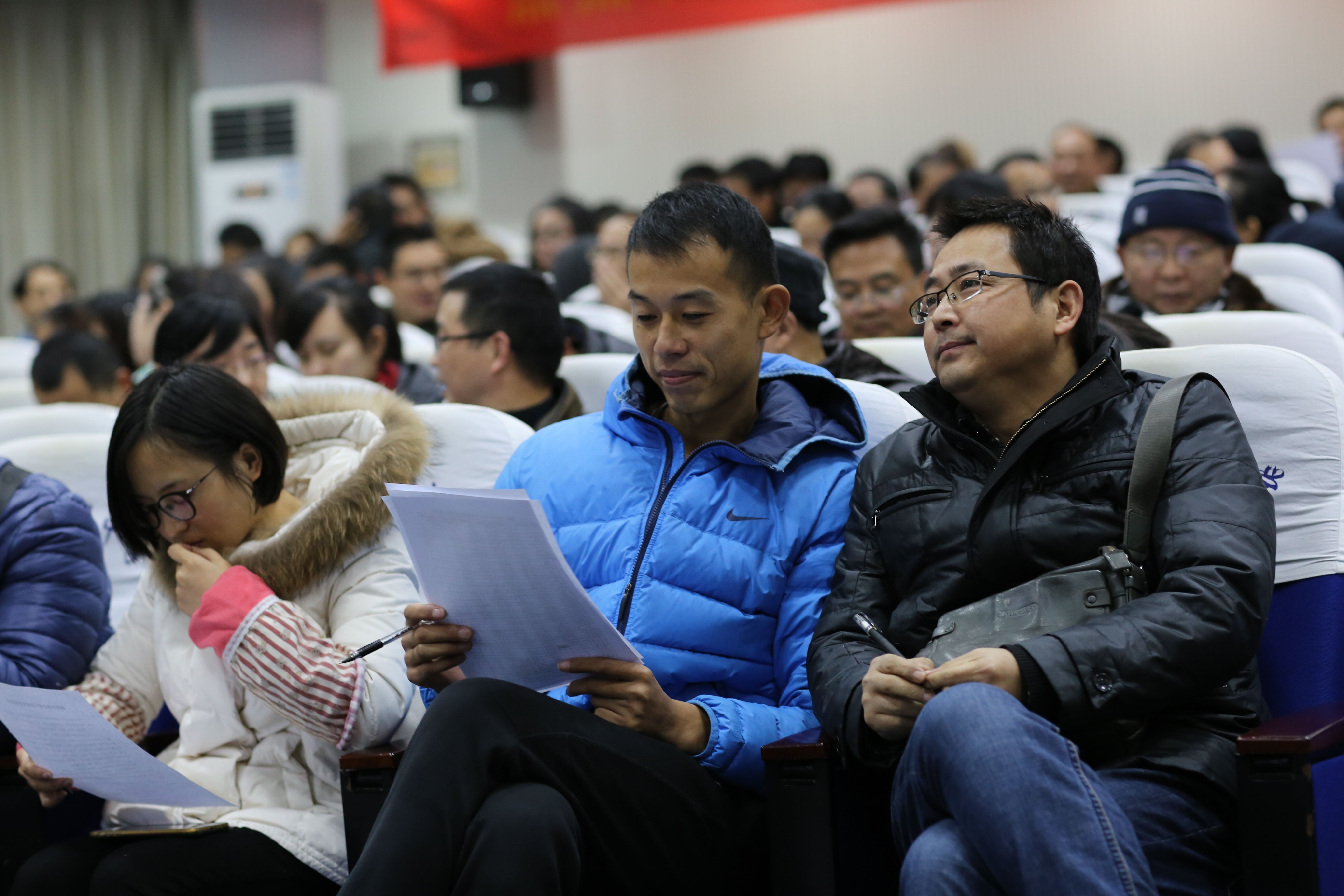 12月14日下午,我校在多功能厅召开”讲看齐,见行动”学习动员大会,校党委书记、校长钟士标,党委副书记吴翀,副校长叶叶及全体教职工参加会议.会议由钟校长主持。