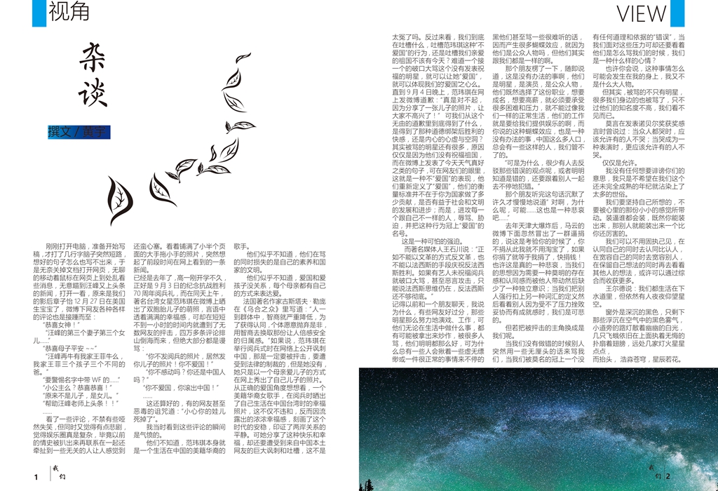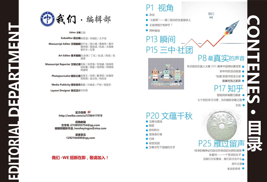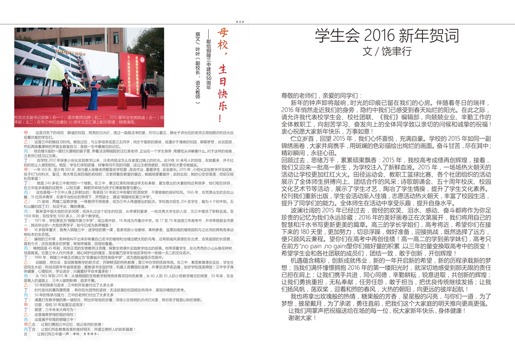 目前,《我们》已成为广大三中学子施展青春风采的靓丽舞台和重要载体之一,在繁荣和推动市三中校园文化建设、践行“身体健康、心理阳光、学业进步”的办学理念中展现着自身独特的魅力和价值。
