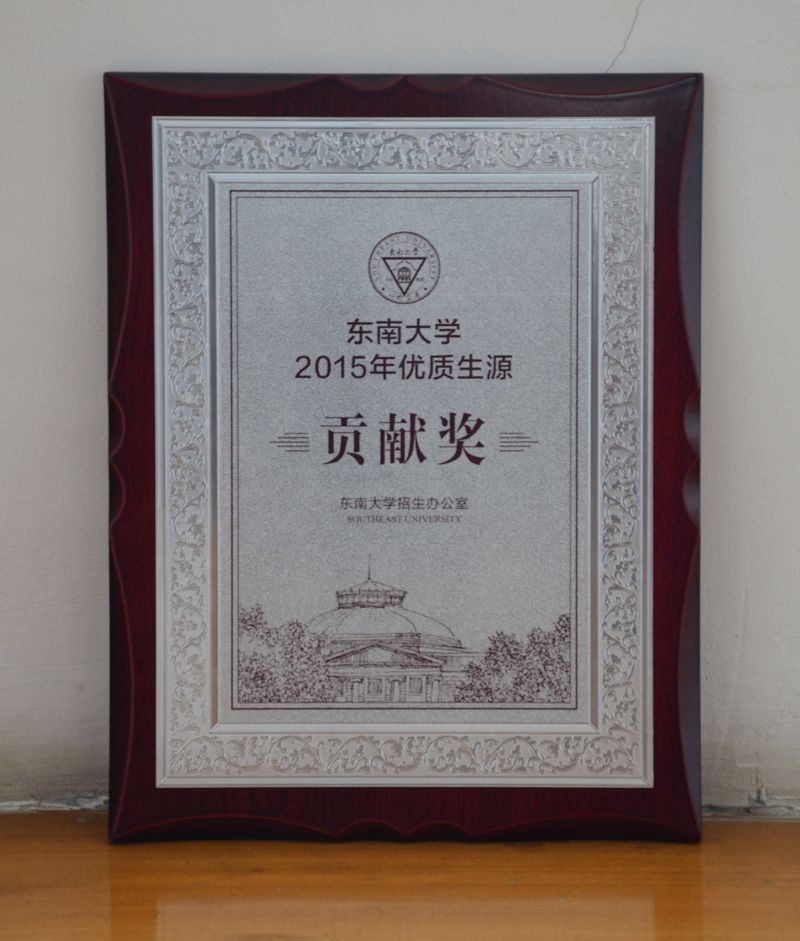 近日,东南大学授予我校“2015年优质生源贡献奖”奖牌。