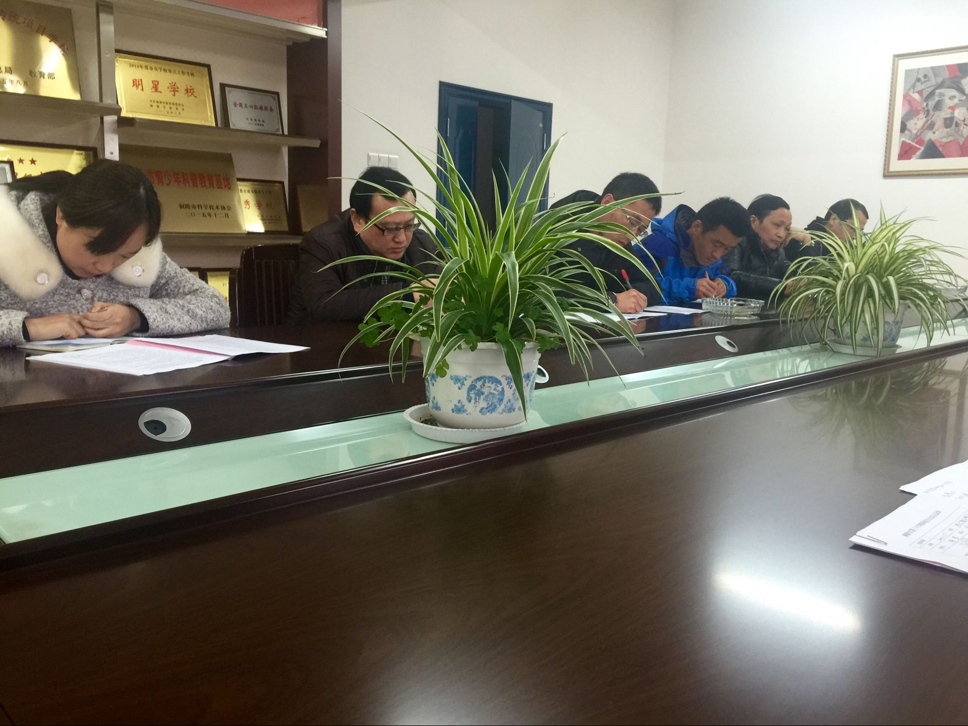 教科室主任钱军对上学期教研组工作进行了汇报,对教研组长们服务教研组的工作所取得的成绩表示了感谢。接着,钱主任以“树木、森林和气候”为喻,强调在当前教研空气并不浓厚的氛围下,要坚持“一棵树”的存在,教研组长可以被弱化,但不能自我矮化,发挥自己在教研组建设中的中坚力量,明确和履行岗位职责,影响和引领组内其他教师,创造性地开展教研活动;为营造教研气氛,教研组每月至少开展一次活动,每学期至少安排三次公开课。钱主任最后还就先进教研组评选、举办开放周、推门听课和办公室卫生等事宜作了说明和安排。