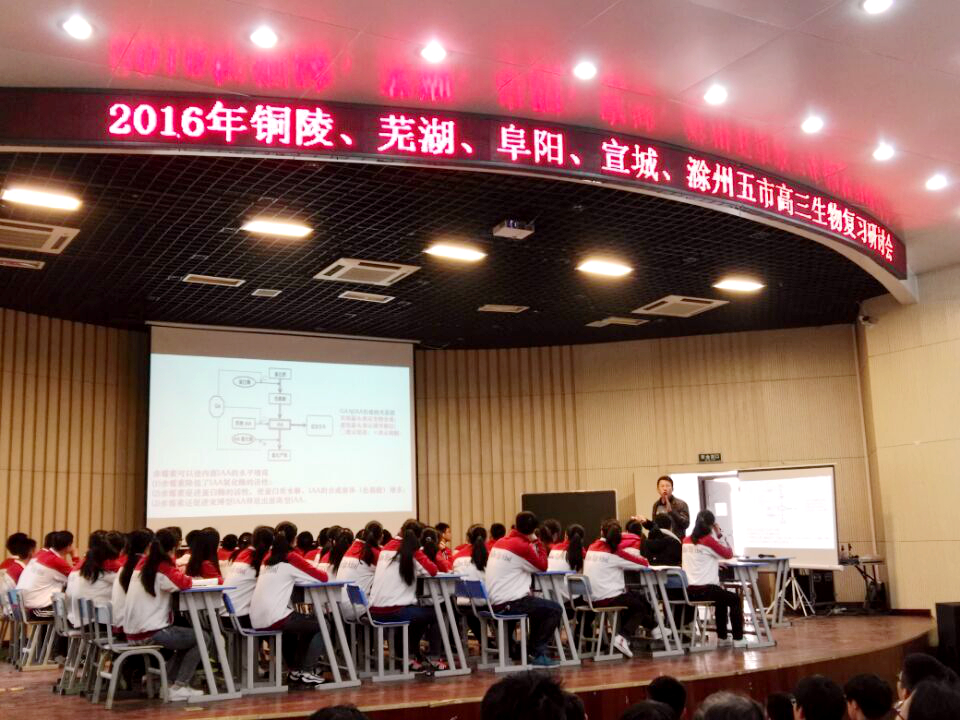 3月18日——20日,2016年铜陵、芜湖、阜阳、宣城、滁州五市高三生物复习研讨会在滁州市滁州中学举行,我校徐盼老师代表铜陵市在会上展示了一节二轮复习课。徐老师整节课充分关注学生主体、教师主导的课程理念,以材料展示引导学生分析的形式,充分调动了学生的积极性,在引领学生回顾已学知识的同时,提高学生获取信息、分析问题、解决问题的能力,避免了二轮复习成为习题课和单调重复而让学生不感兴趣现象的发生。省教科院生物教研员钟能政老师高度评价了徐老师的课,并希望参会的观摩老师在二轮复习的教学中学习实践,为学生科学素养的提升和推动我省的高中生物教学做出贡献。