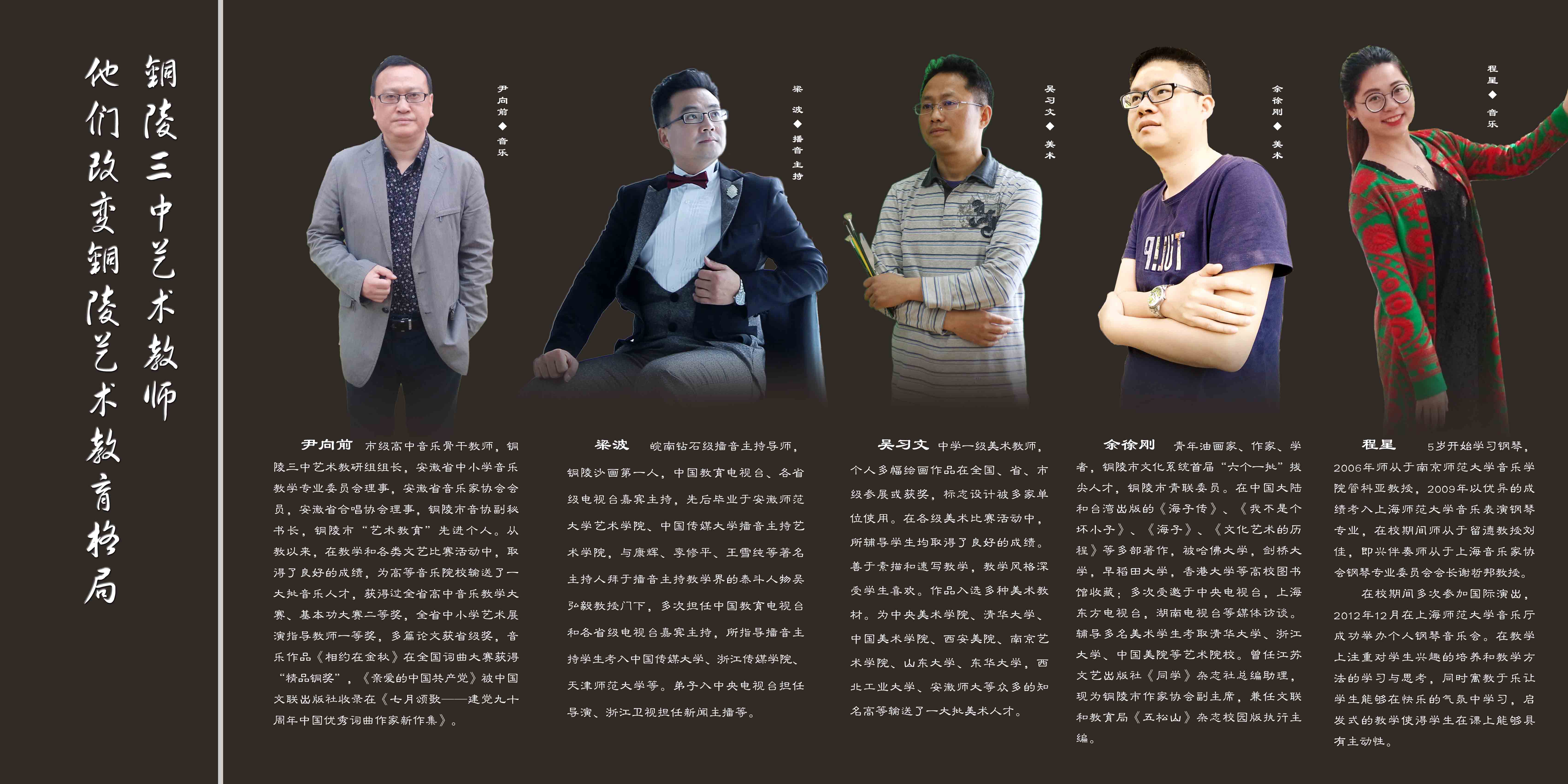 他们培养的学生被中央戏剧学院、中央美术学院、中国传媒大学、中央音乐学院、清华大学等名校录取,在铜陵,他们引领艺术教育的方向,在铜陵,他们影响艺术教育的格局!