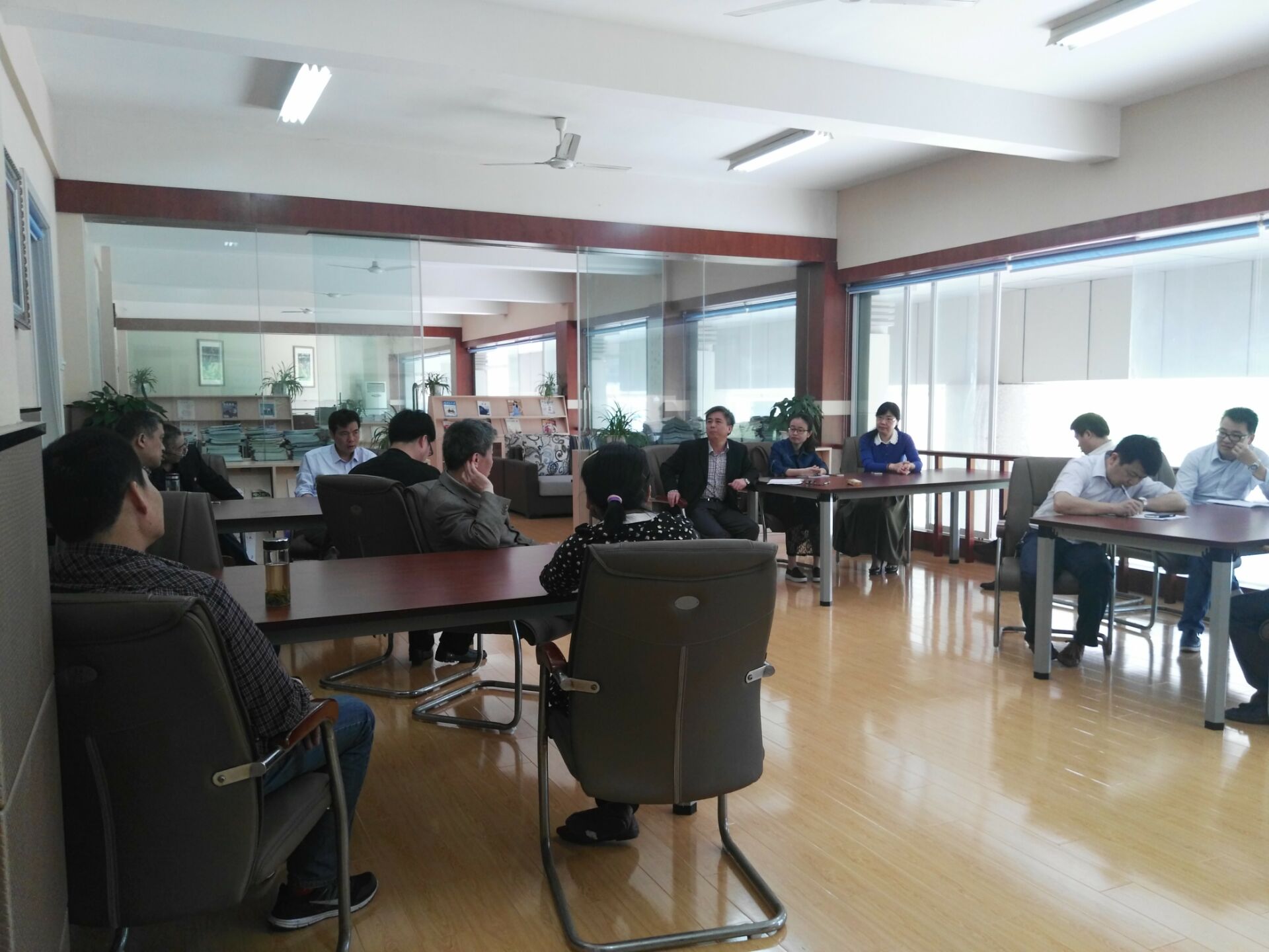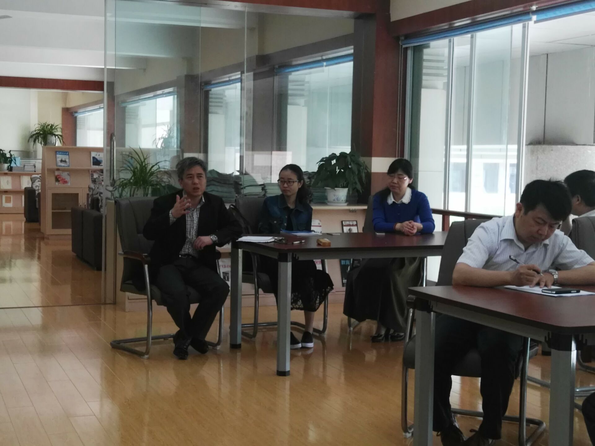 4月22日上午,铜陵三中物理教研组全体教师在校综合楼二楼教师阅览室和汪主任进行了一次轻松、愉快,极具思想性的座谈会,会议开始汪主任首先谈了这一次驻校的目的就是想在提高物理高端学习的方面做一些尝试与推广,对三中物理教研组之前的工作予以肯定,并对今后工作的开展提出了一些宝贵的意见。在谈到他这几天听课后的感受时,对几位授课教师的课堂教学予以肯定。他提出高中物理课堂教学要有理论色彩,要有严密的逻辑过程及抽象过程。同时汪主任对三中物理竞赛提出了自己的建议和展望,对近三年所取得的成绩予以充分的肯定。会议在轻松愉悦的氛围中结束。