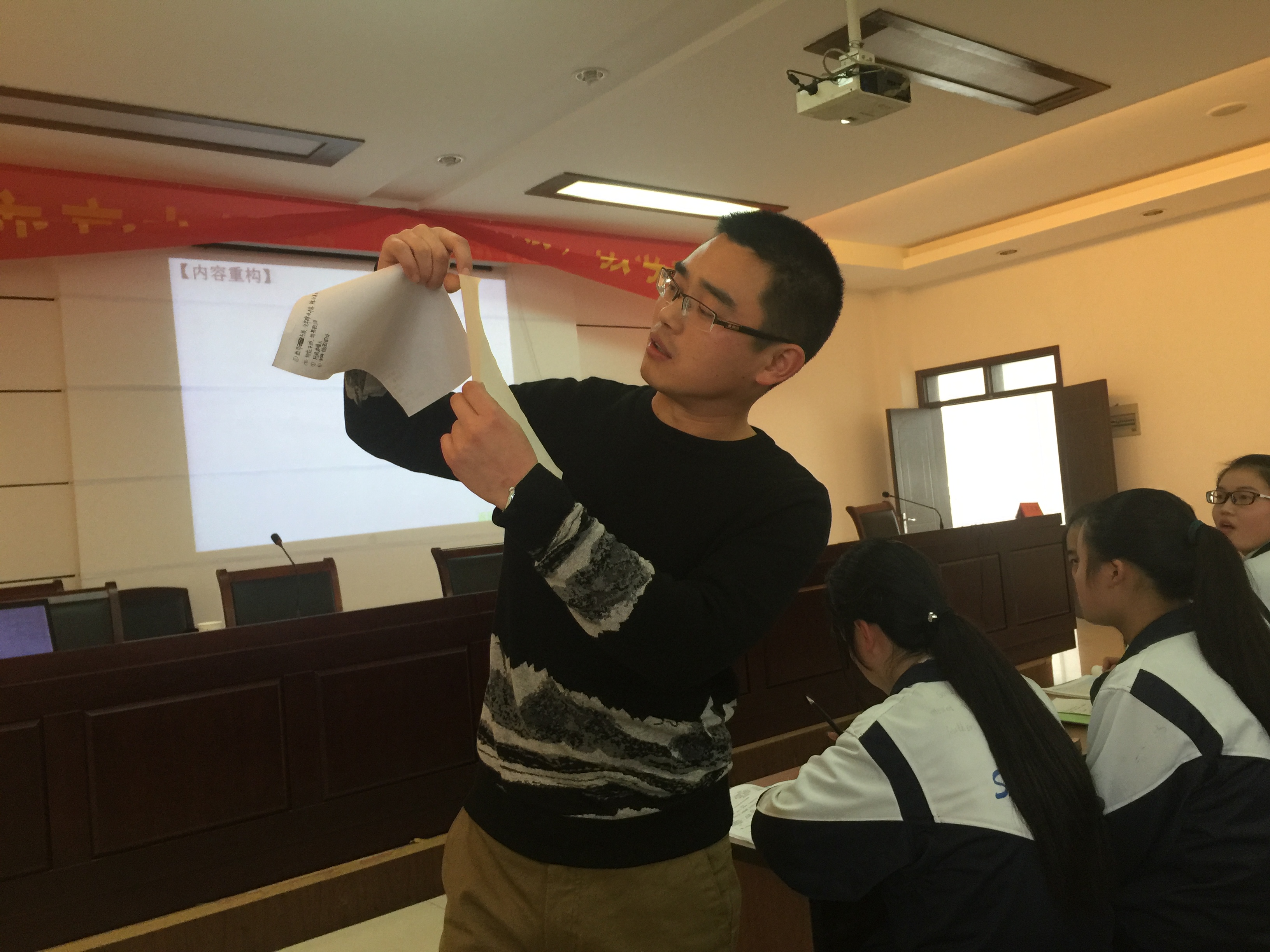 现场展示观摩课环节,我组青年教师刘强,以《“微专题”在二轮复习中的应用----“河口”地区为例》为课题,向与会的100多位教师展示了一堂高质量的复习研讨课。刘老师以一轮复习后学生普遍面临的问题为切入点,依托高考试题的现场演练,现场发现学生问题,分析问题的成因,寻求解决的方法 ---- 引导学生发散性探寻设计“河口”地区的所有地理要素,并探寻它们之间的联系,一步步引导学生自主重构“河口地区”的知识结构。在学生充分活动的基础上,对学生活动的成果进行点评、归纳,帮助学生在“乱中取胜”,让复杂的、学生罗列的知识点变得条理化、简洁化、结构化,使学生充分感受到地理要素间相互联系、相互影响的整体性特征。再以高考真题检测学习效果,强化知识结构的理解应用能力,在师生互动,生生互动中,拓展了学生的思维,明确了方向,最为宝贵的是给予他们思想与方法上的启迪,对他们的后期学习起到了良好的导向作用,受到与会同仁的高度认可!并在而后的专家发言中被多次提及。