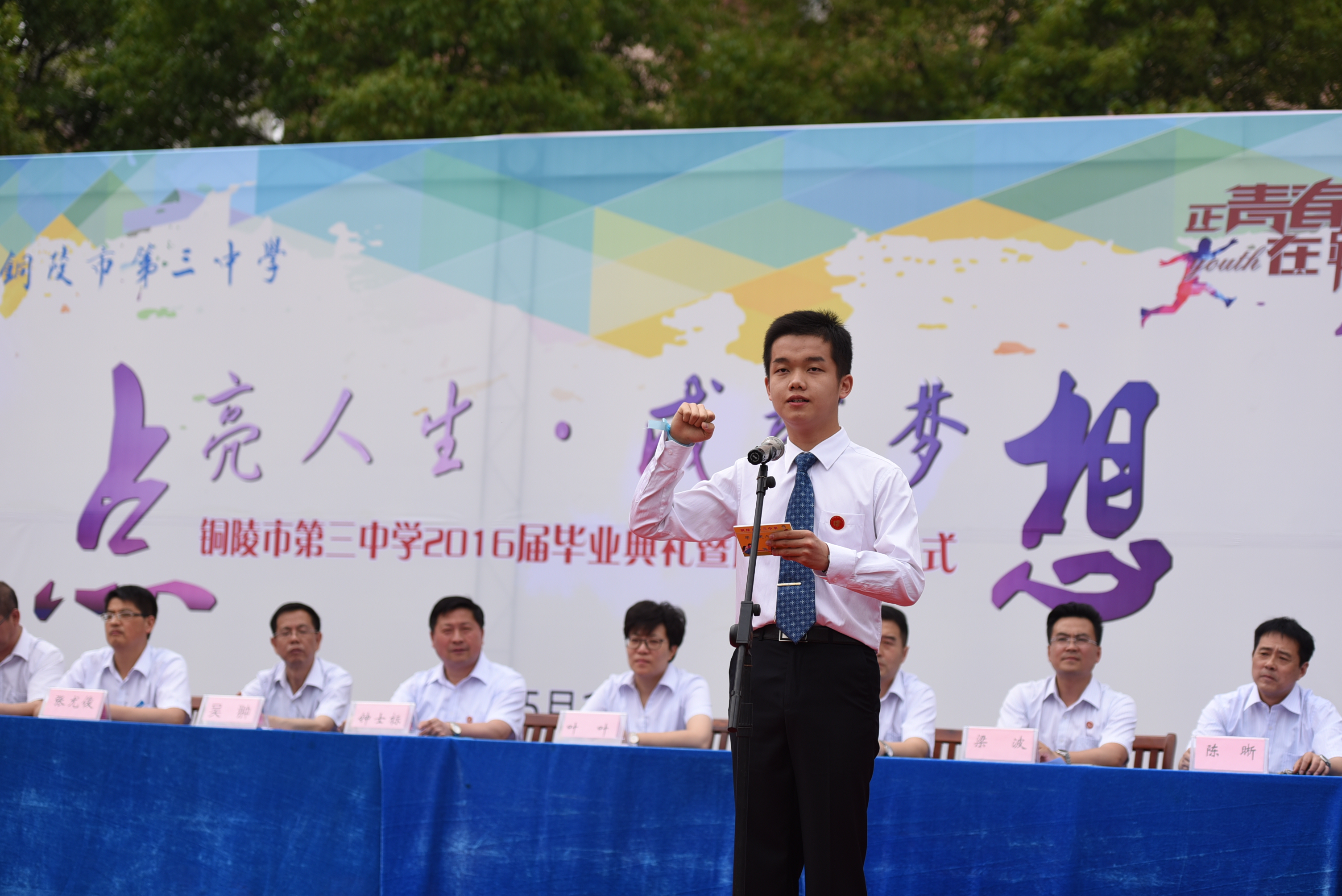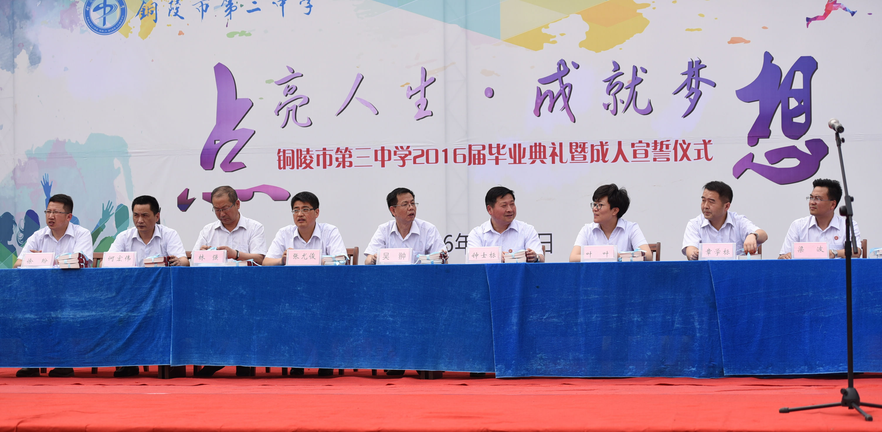 本校讯 5月18日,对于铜陵三中所有高三毕业生来说,是个重要的日子,由校政教处和团委联合举办的18岁青春成人礼活动,从下午一点半开始的仪式,到晚上九点半结束的荧光徒步行走活动,持续了8个小时,活动共有千余师生和家长参加。