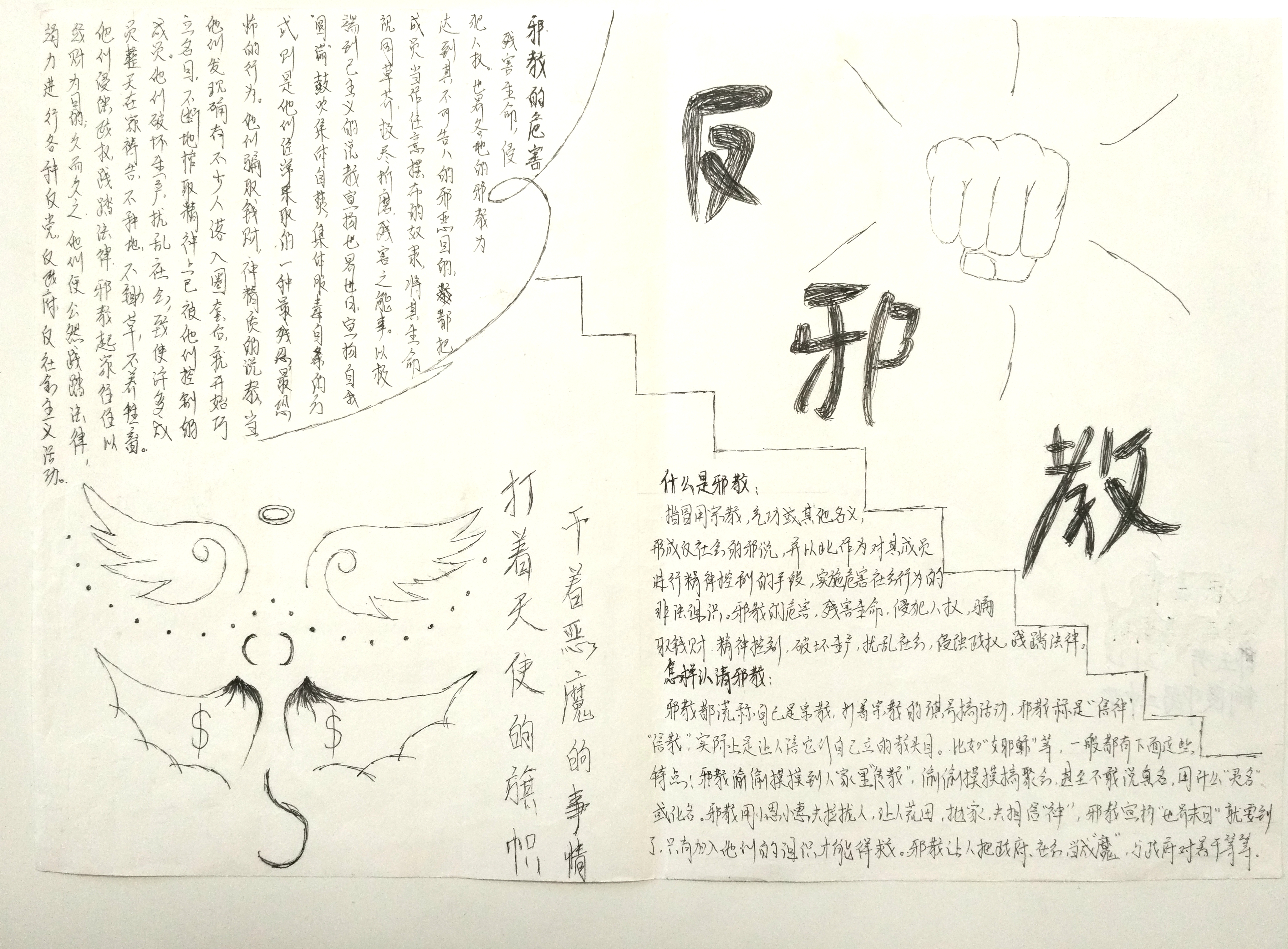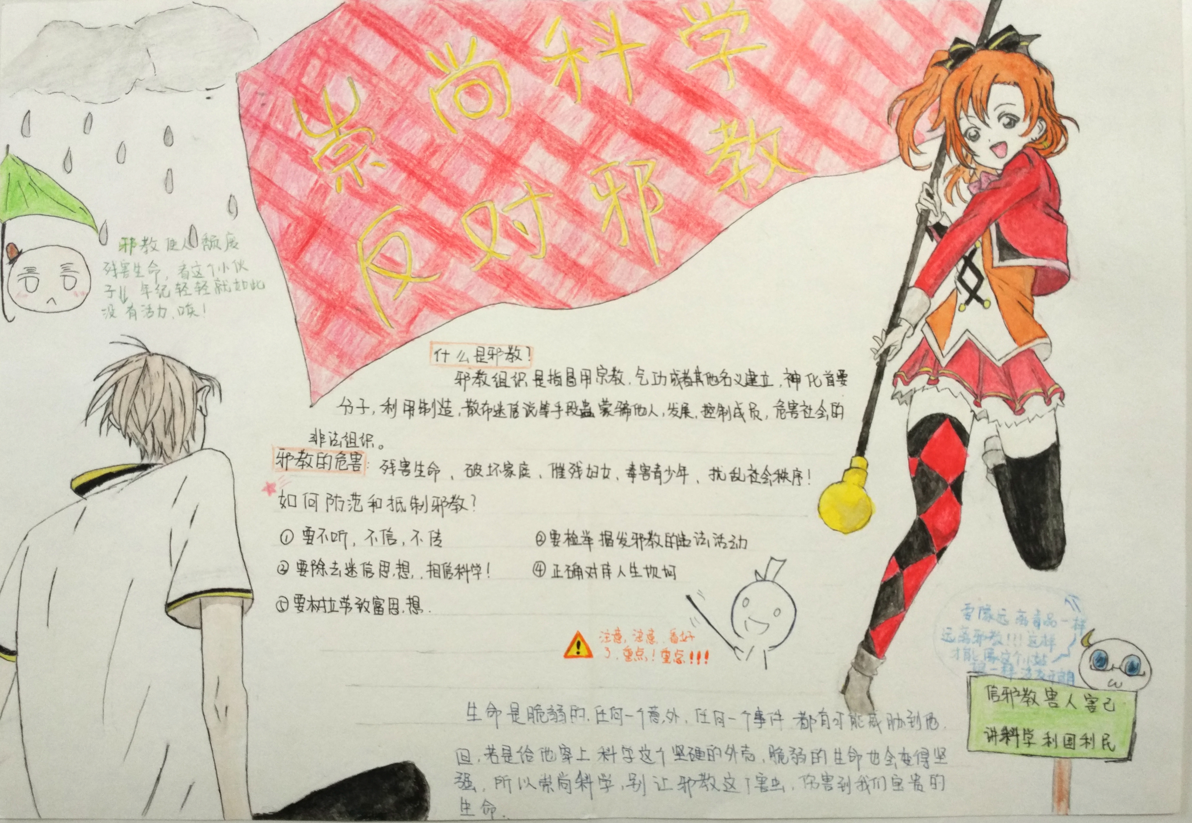 根据铜防邪办和市教育局文件精神,近日,市三中组织开展了一系列以“反邪教警示教育和宣传”为主题的活动。校D&M动漫社积极参与其中,组织了反邪教漫画(手抄报)评选活动。此次评选活动将评出一、二、三等奖若干名并择优推荐参加教育系统反邪教漫画(手抄报)比赛。
