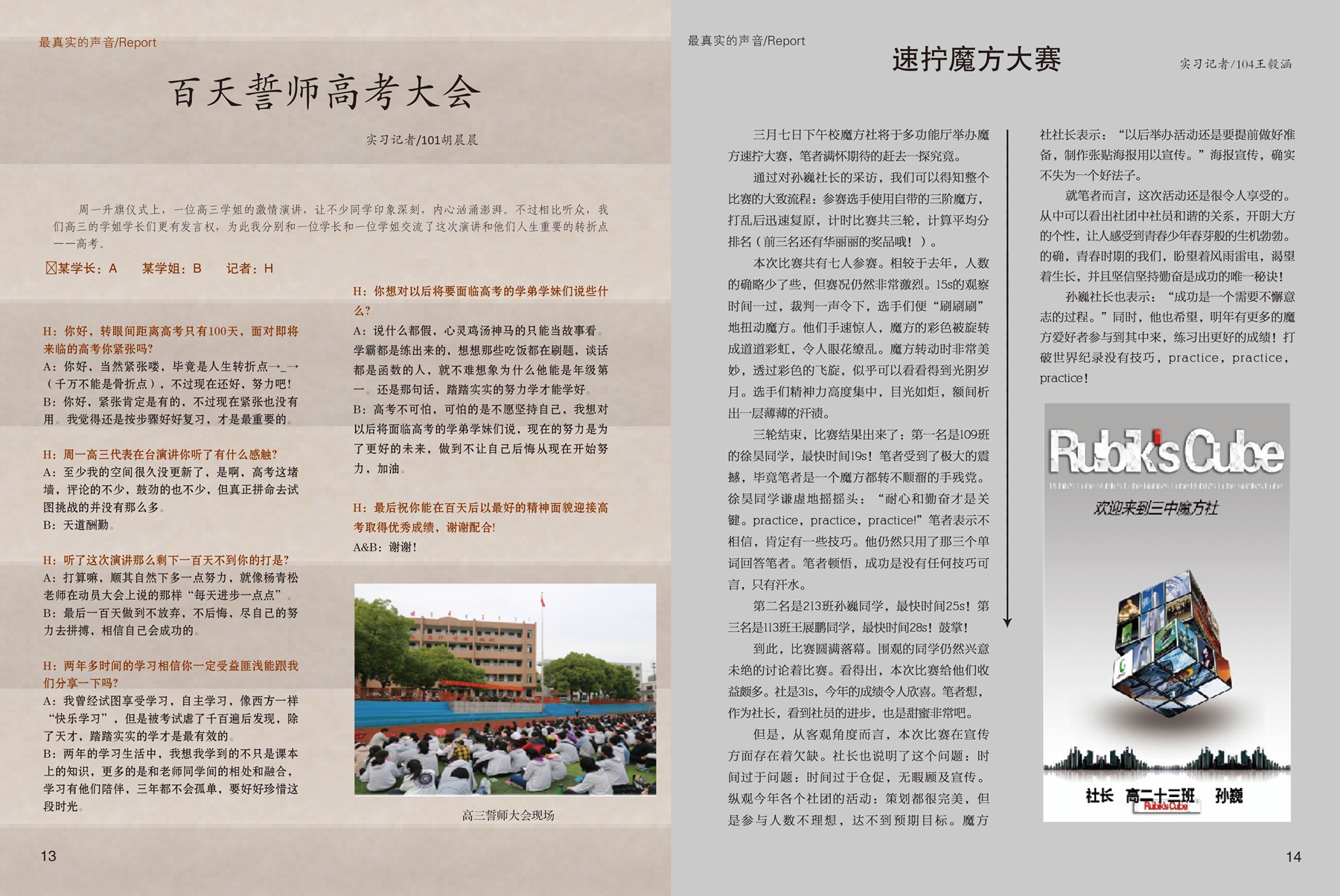 目前,校报《我们》与校学生会和各学生社团一起已成为广大三中学子施展青春风采的靓丽舞台和重要载体,在推动和繁荣市三中校园文化建设、不断提升学生自我管理和服务水平、践行“身体健康、心理阳光、学业进步”的办学理念中展现着自身独特的魅力和价值。
