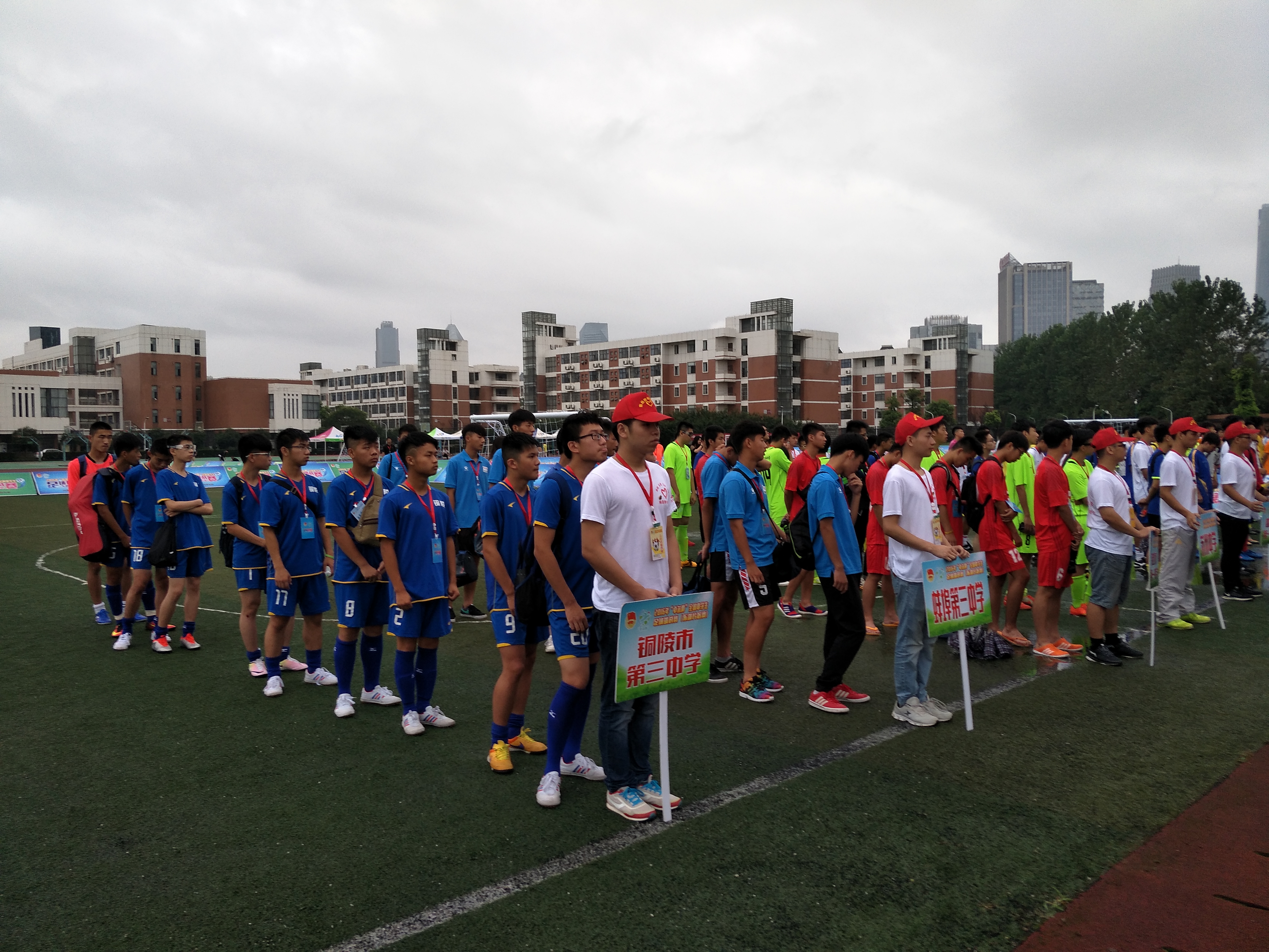 铜陵三中代表队与有着“萍乡市校园足球重点学校”之称的萍乡九中,位于教育部认定的“全国青少年校园足球试点县(区)”、入围首批“全国青少年校园足球特色学校”的崇明民本中学,2011年获得高中足球联赛总决赛全国冠军、并代表中国参加亚洲高中生足球比赛获得第四名的江阴一中,2016年“全国足球学校杯”男子U17季军的济南七中同在C组。作为安徽省3支代表队(蚌埠三中、淮北一中和铜陵三中)之一的我校代表队面对强队,毫不示弱,斗志昂扬,出色贯彻了由铜陵市足球协会秘书长马军、校工会负责人陈晰、体育教研组长鲁仕纬组成的教练组的战略战术意图,在首日的小组赛中表现突出,上午首场比赛的常规时间2:2战平了济南七中,下午比赛中2:1战胜江阴一中,以一胜一平的成绩暂居小组积分第一。