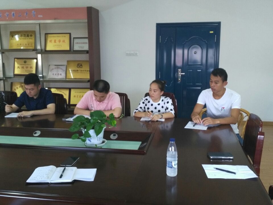 8月30日上午九点,我校新教师培训会在综合楼五楼会议室召开。校长钟士标,副校长叶叶,教科室主任钱军,我校部分名师代表和11位新教师参加会议。会议由钱军主任主持。