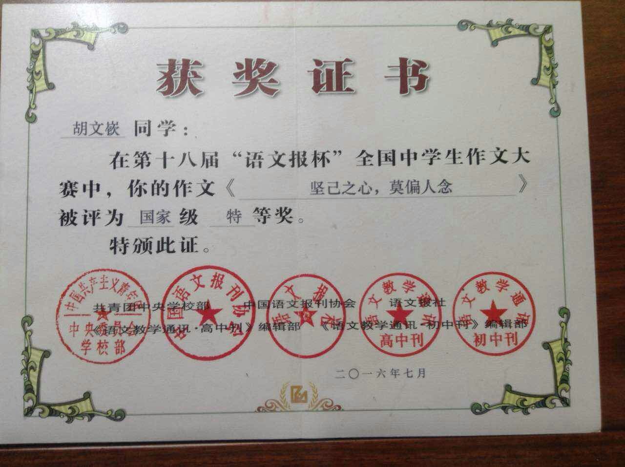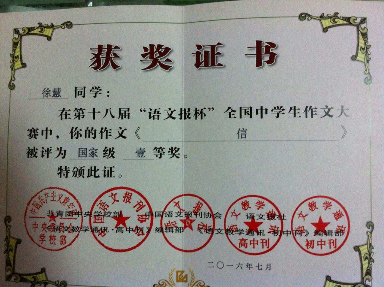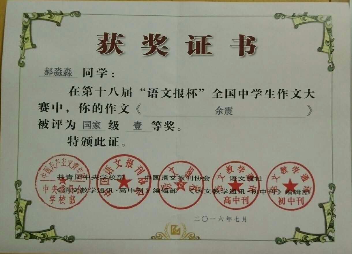 这是我校首次大规模组织学生参加全国性作文大赛获得的最高奖项。