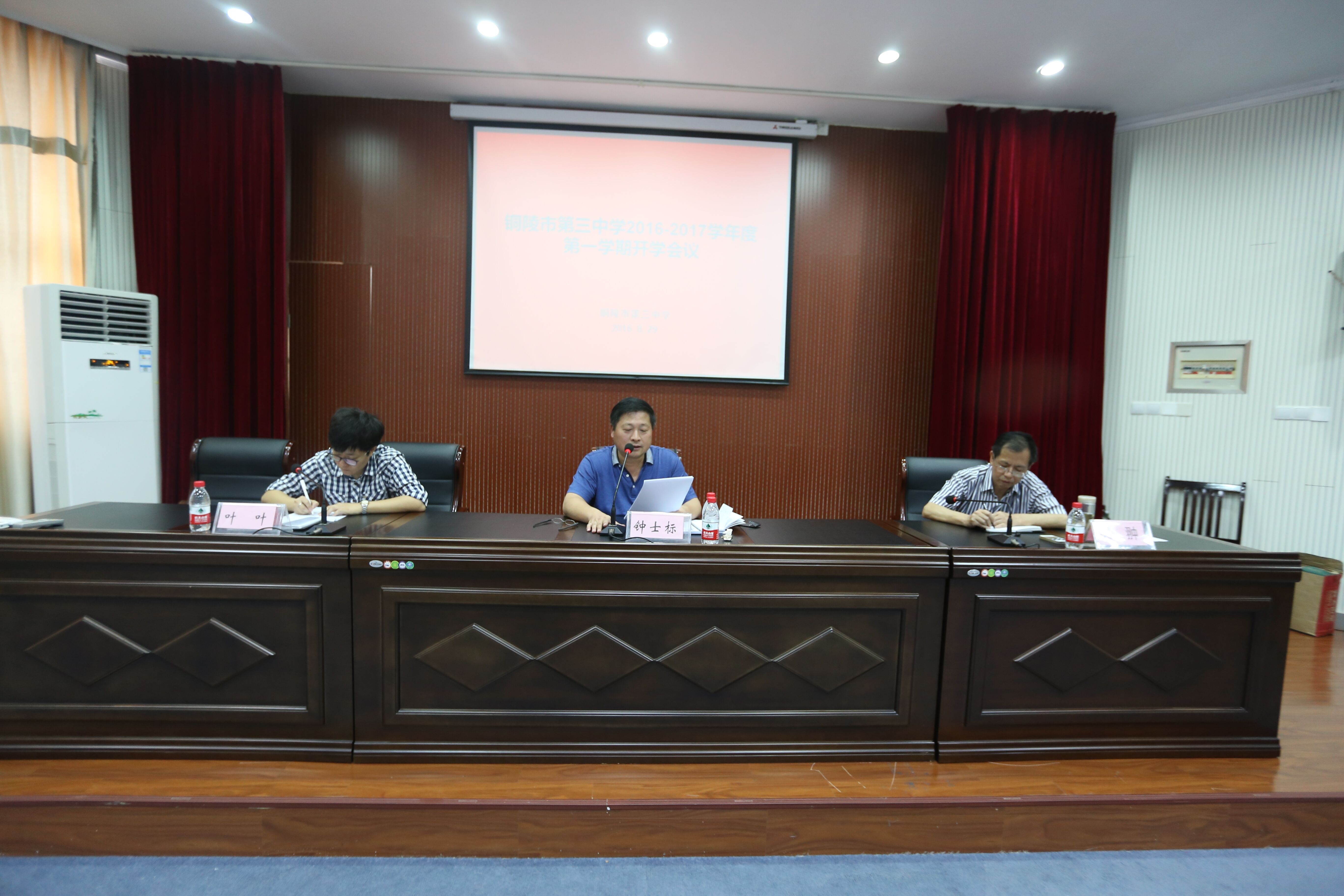 钟校长指出,近年来,铜陵三中以“身体健康、心理阳光、学业进步”为办学目标,坚持“三大”思想基础和“三不”言行要求,在全体教职工的辛勤努力下,学校教育教学成果显著,高考成绩大幅度提升,老师们的敬业精神和突出成绩为学校赢得了良好的声誉。新学期,学校将以教学为中心,以质量为根本,以高考改革为导向,以后勤服务、综合治理为保障,增强忧患意识,推进教育改革,进一步提升学校的影响力和辐射力。