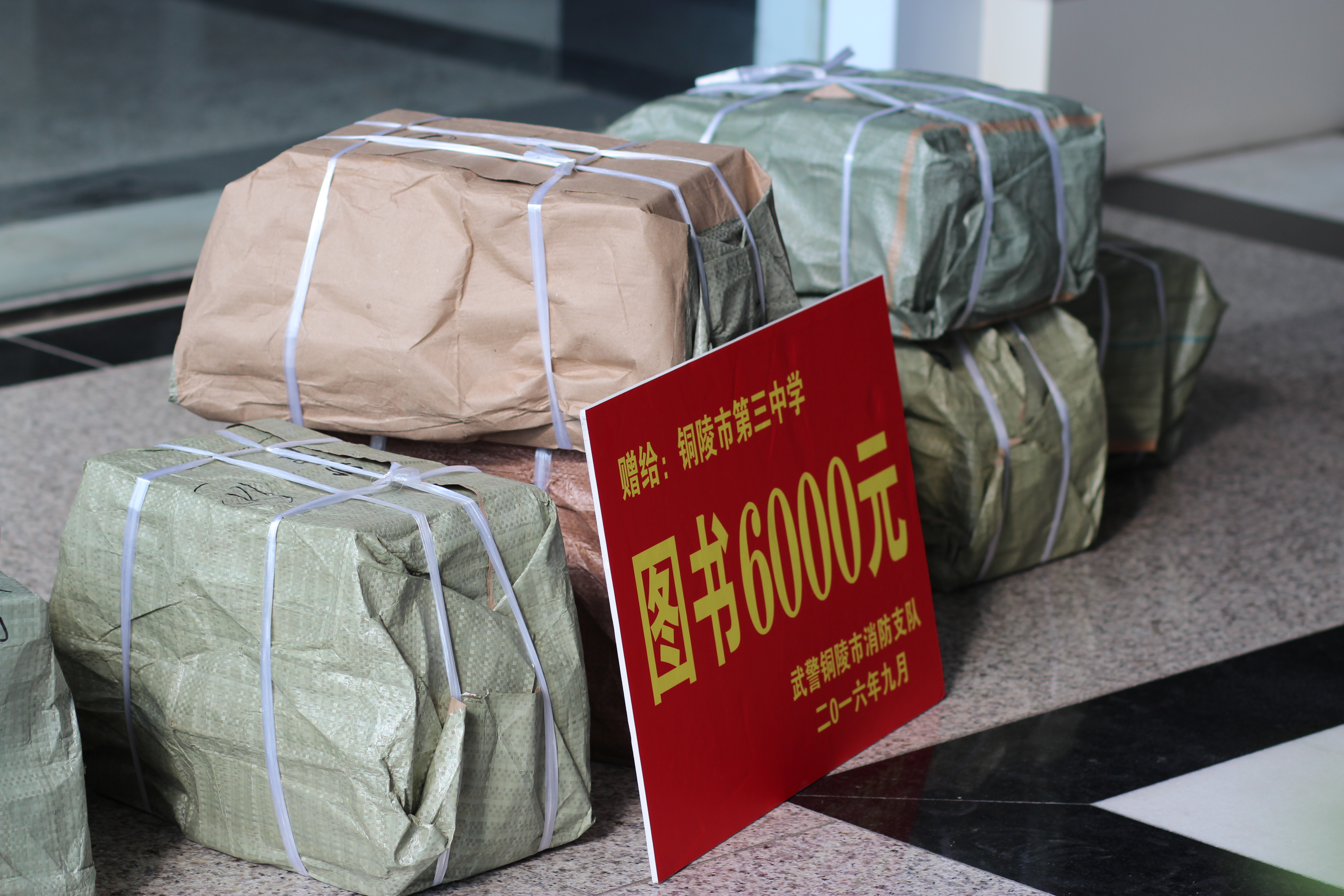 本校讯 9月9日上午,铜陵市消防支队主任张辉一行来我校慰问,向我校教师表示节日的祝贺,并赠送价值6000元的图书。