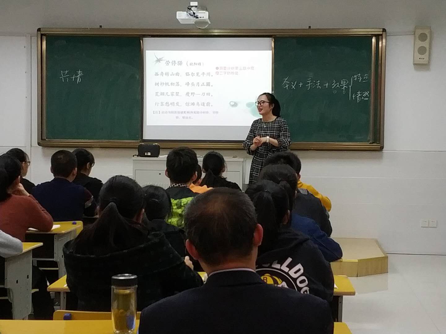 下午第一节课即是由丁睿老师主讲,由于丁睿老师现教授高三课程,所以结合高三教学实际,特意以《古诗词中的“炼字”》为主讲题目。丁老师以学生们阅读过的一篇高考阅读为导入,告诫学生不要过分强调答案的标准,而是希望我们能够深入去体会诗人的情感,做到“共情”!整个课堂充满生机、充满活力,学生积极思考,与老师互动。
