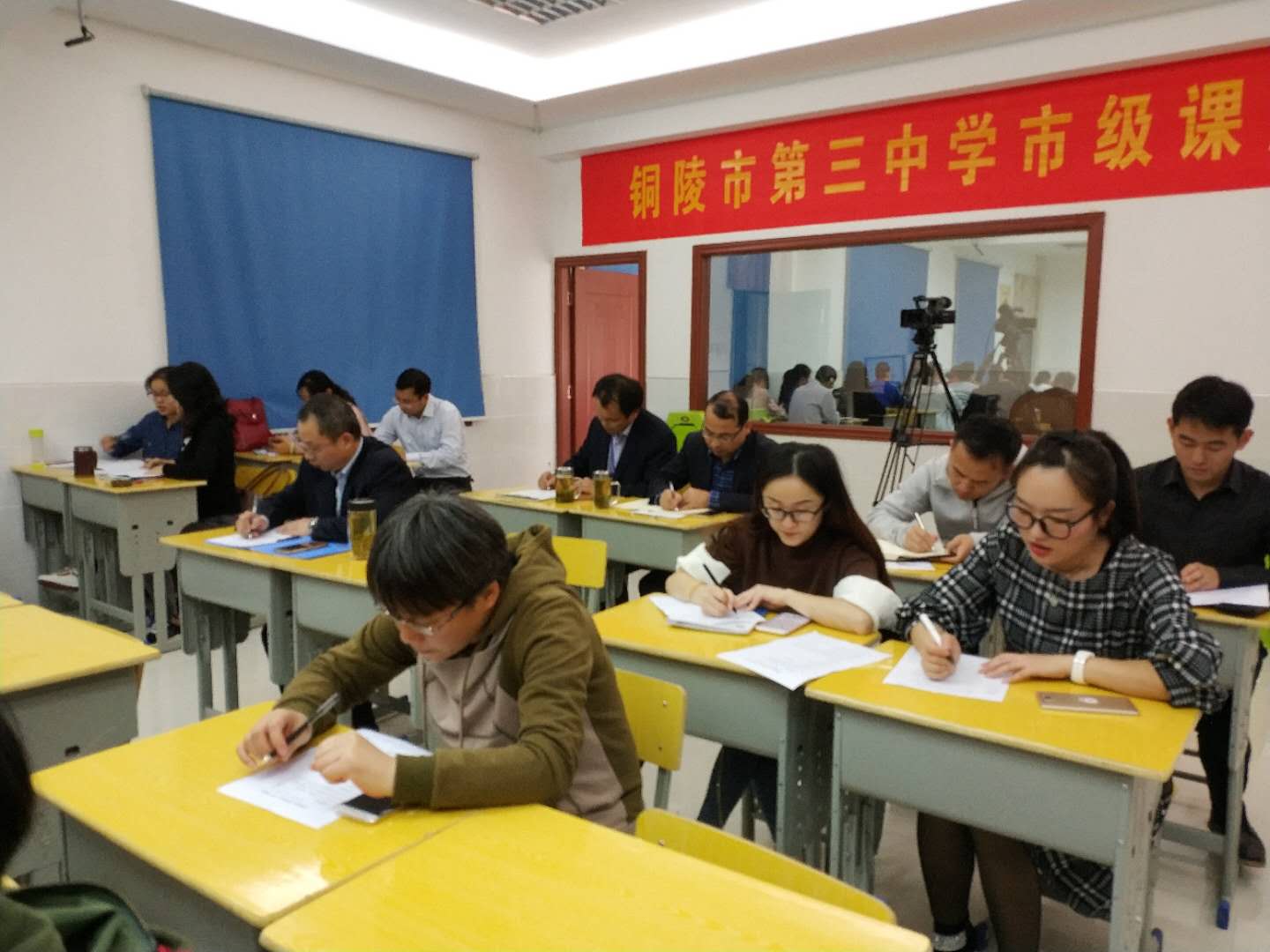 金秋十月,正值党的十九大胜利闭幕之际,铜陵市三中的语文组的教研活动也正在如火如荼的进行着。自10月18日,铜陵市教育局中学语文教研员刘志胜老师在我校开展为期两周的驻校活动以来,时常走进我校语文教学课堂进行听课活动。10月25日下午,语文组再次在科学馆五楼录播室举行的语文组举行了听课评课活动,全体语文组教师参加了活动,教科室主任钱军出席了本次活动,此次活动由语文组组长乔红胜老师主持。