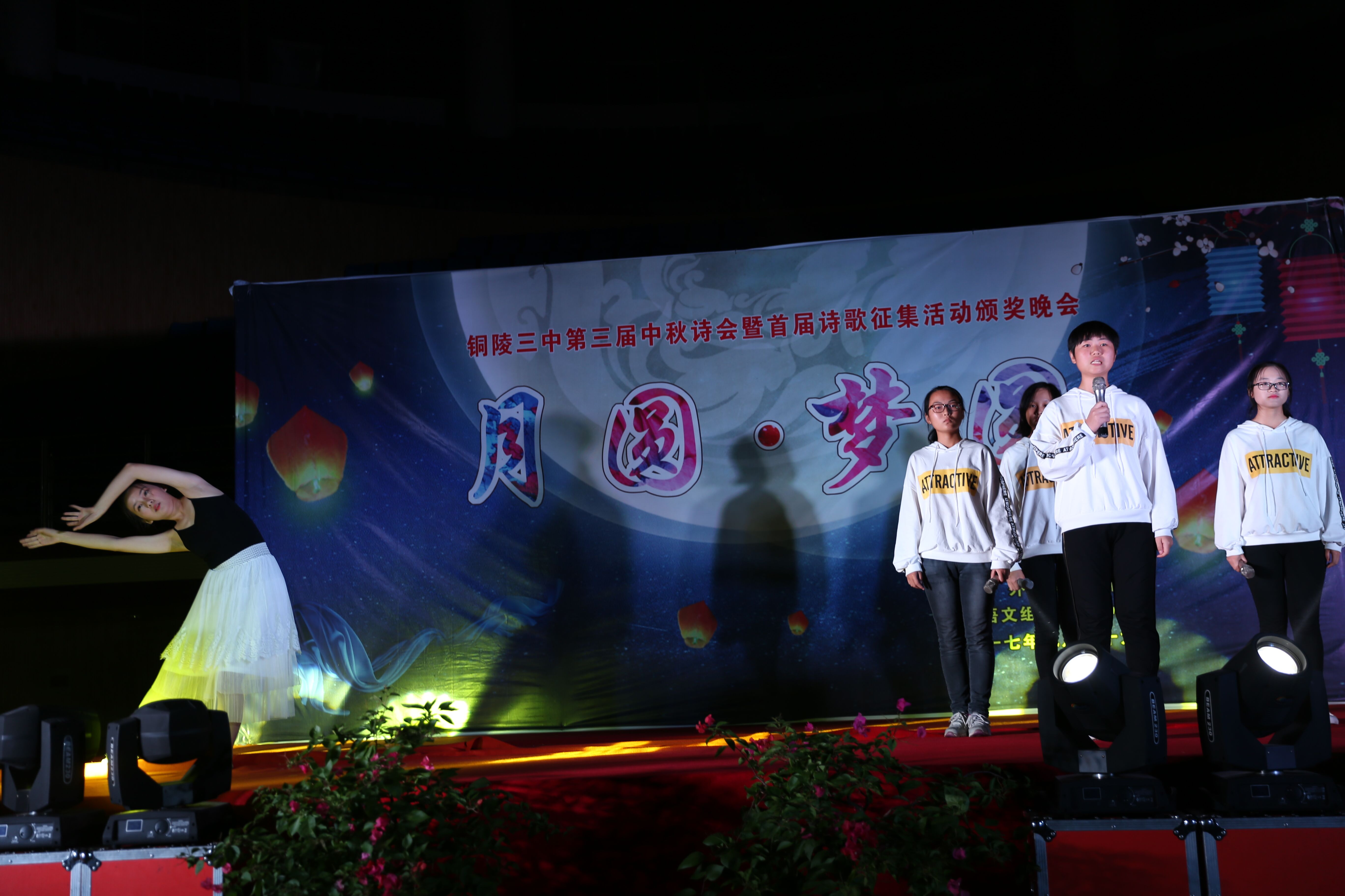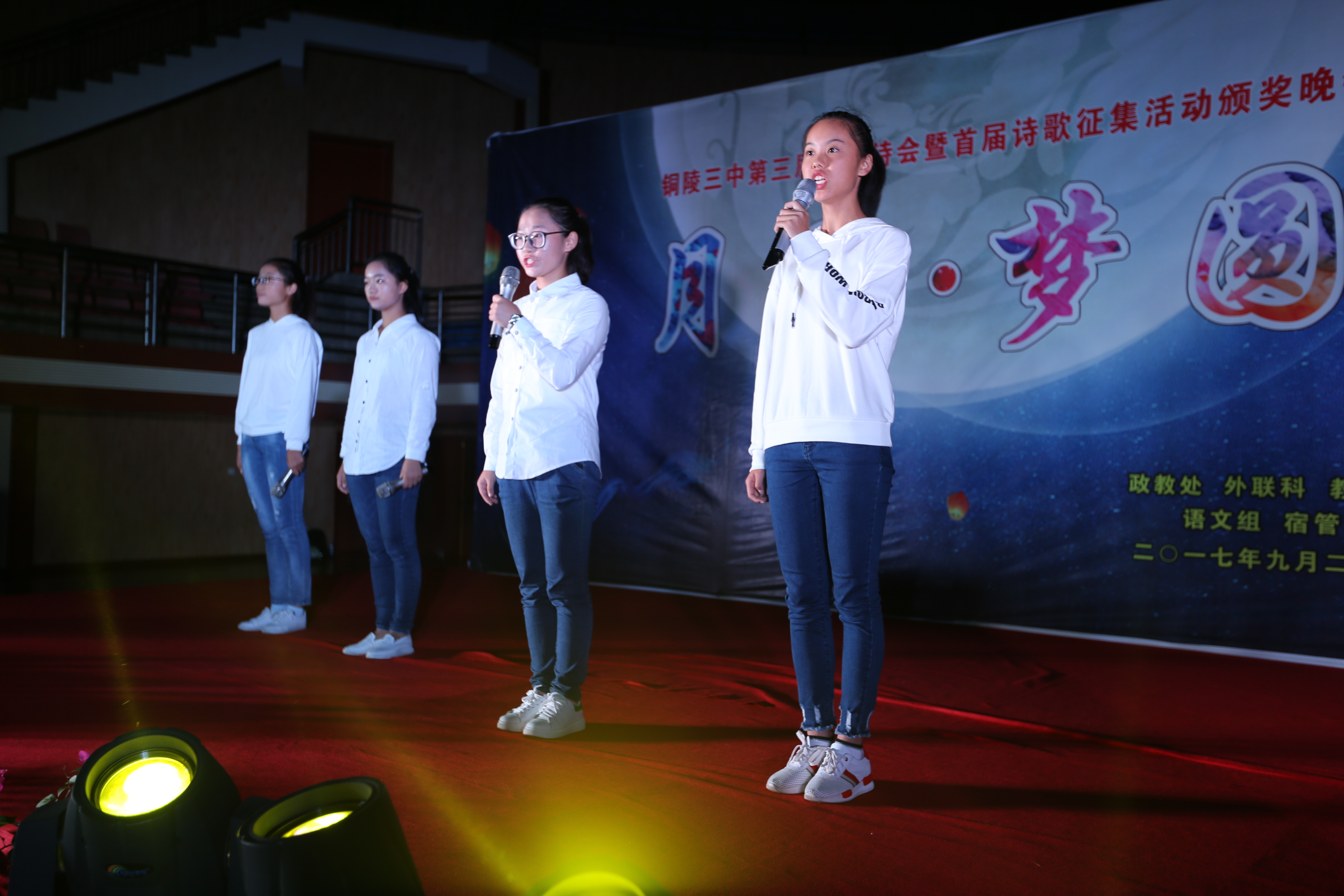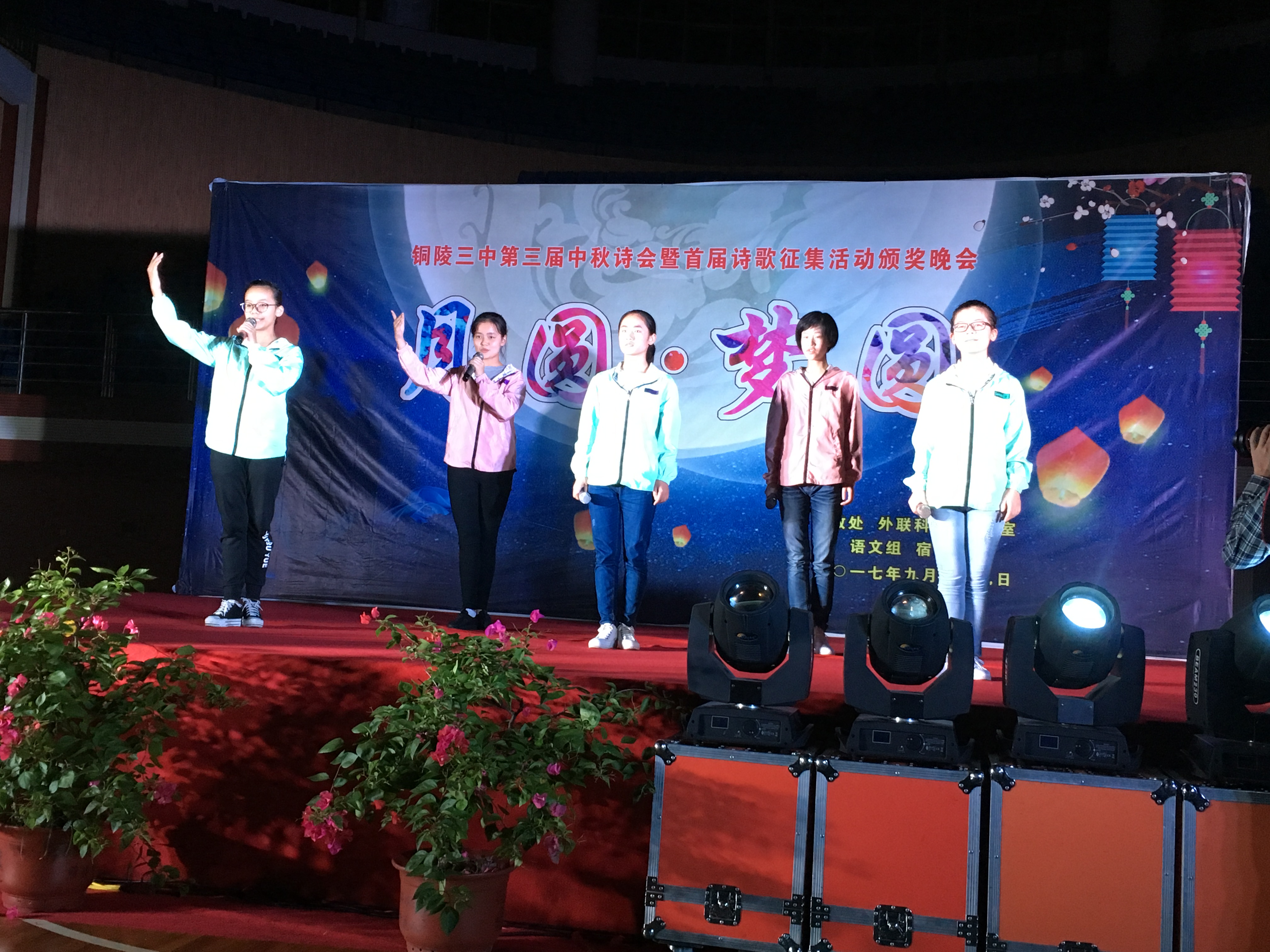 为弘扬中国优秀的传统文化,增强我校学生对诗歌文化的认识和理解,营造校园的诗歌文化氛围。铜陵市第三中学继2015、2016成功举办两届诗会后,于2017年9月29日隆重举办了第三届中秋诗会。