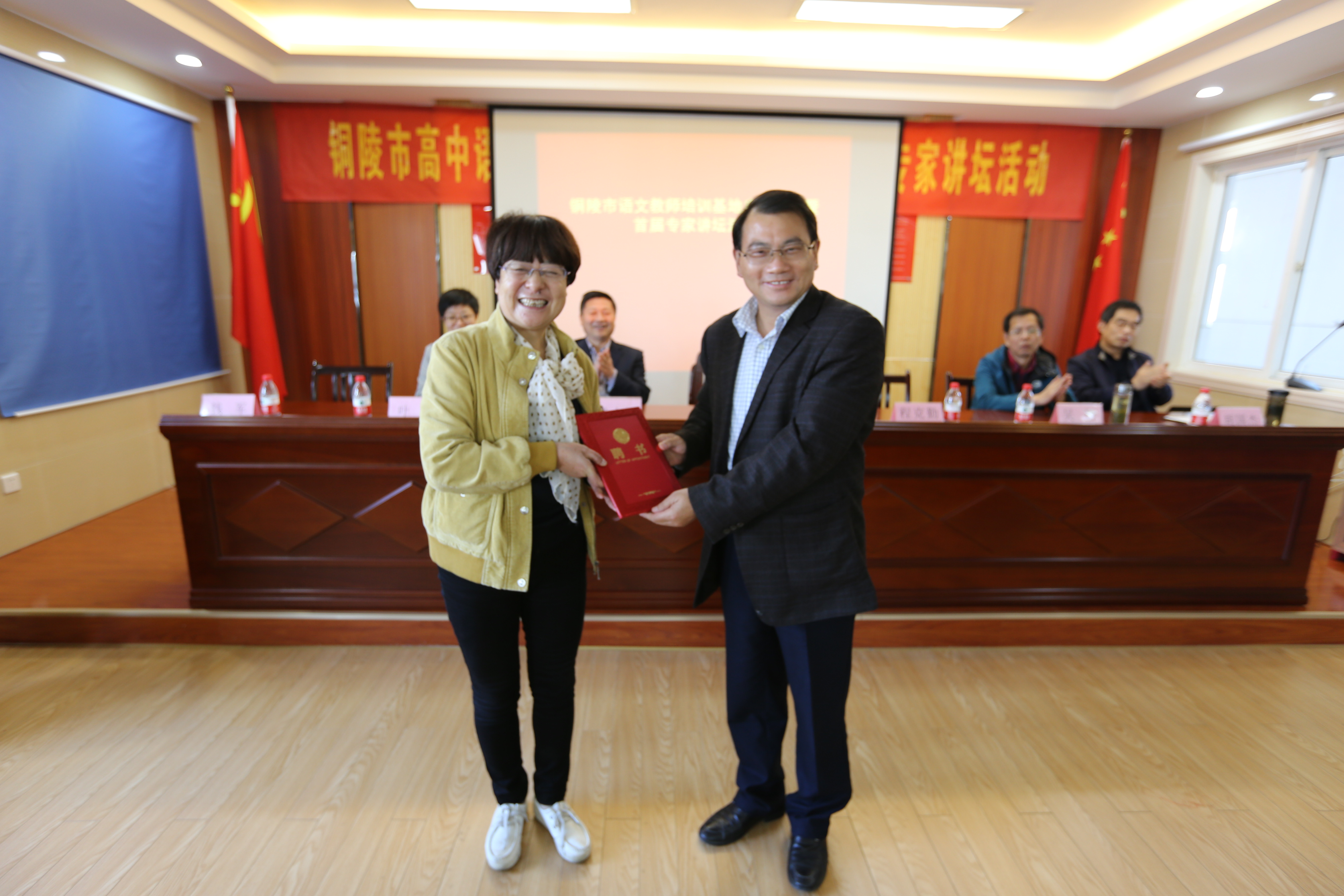 大会第四项,颁发铜陵市高中语文教师培训基地特邀指导专家证书。
