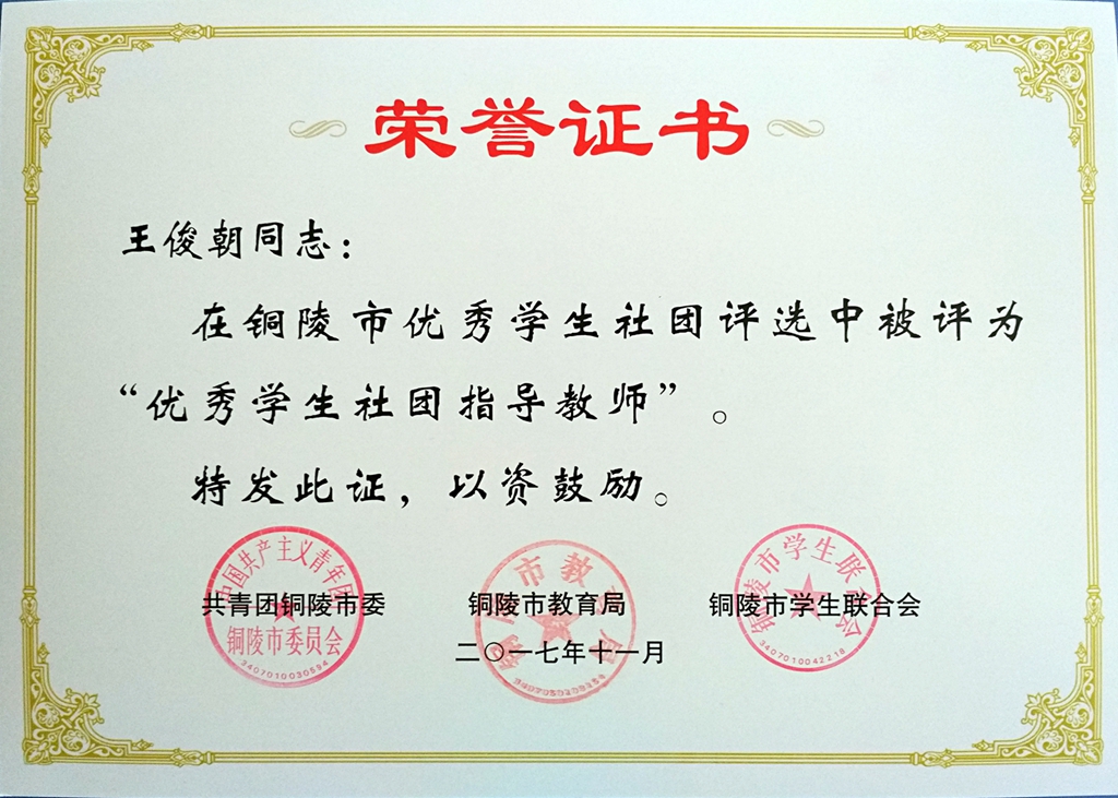 王俊朝老师获评“市级优秀学生社团指导教师”
