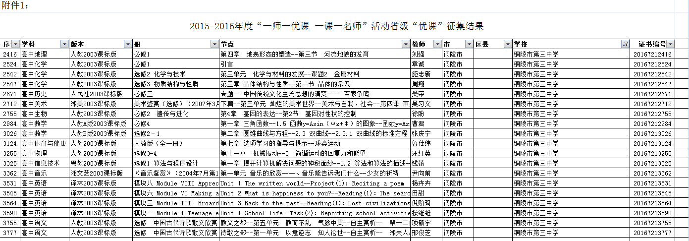 近日,中央电教馆关于2015—2016学年度“一师一优课、一课一名师”活动评选结果揭晓,我校成绩喜人,参评教师共荣获省部级优课25节次,其中6节课获部优,在我市各校中位列第一。