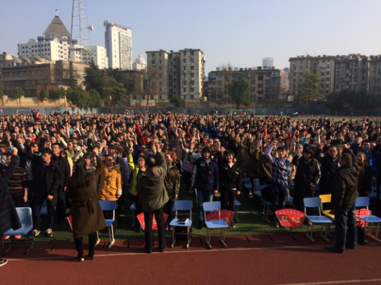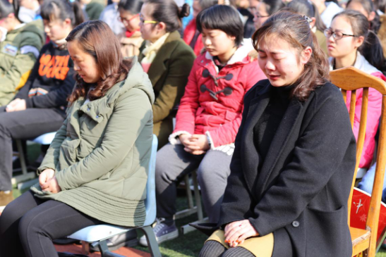 之后进行的感恩老师环节,让现场气氛达到了高潮。班主任面对着本班同学,同学们双手举过头顶长时间热烈地鼓掌,并九十度深深地鞠躬,然后同学们纷纷走上前来拥抱自己的班主任老师,表达了对班主任的感谢之情。