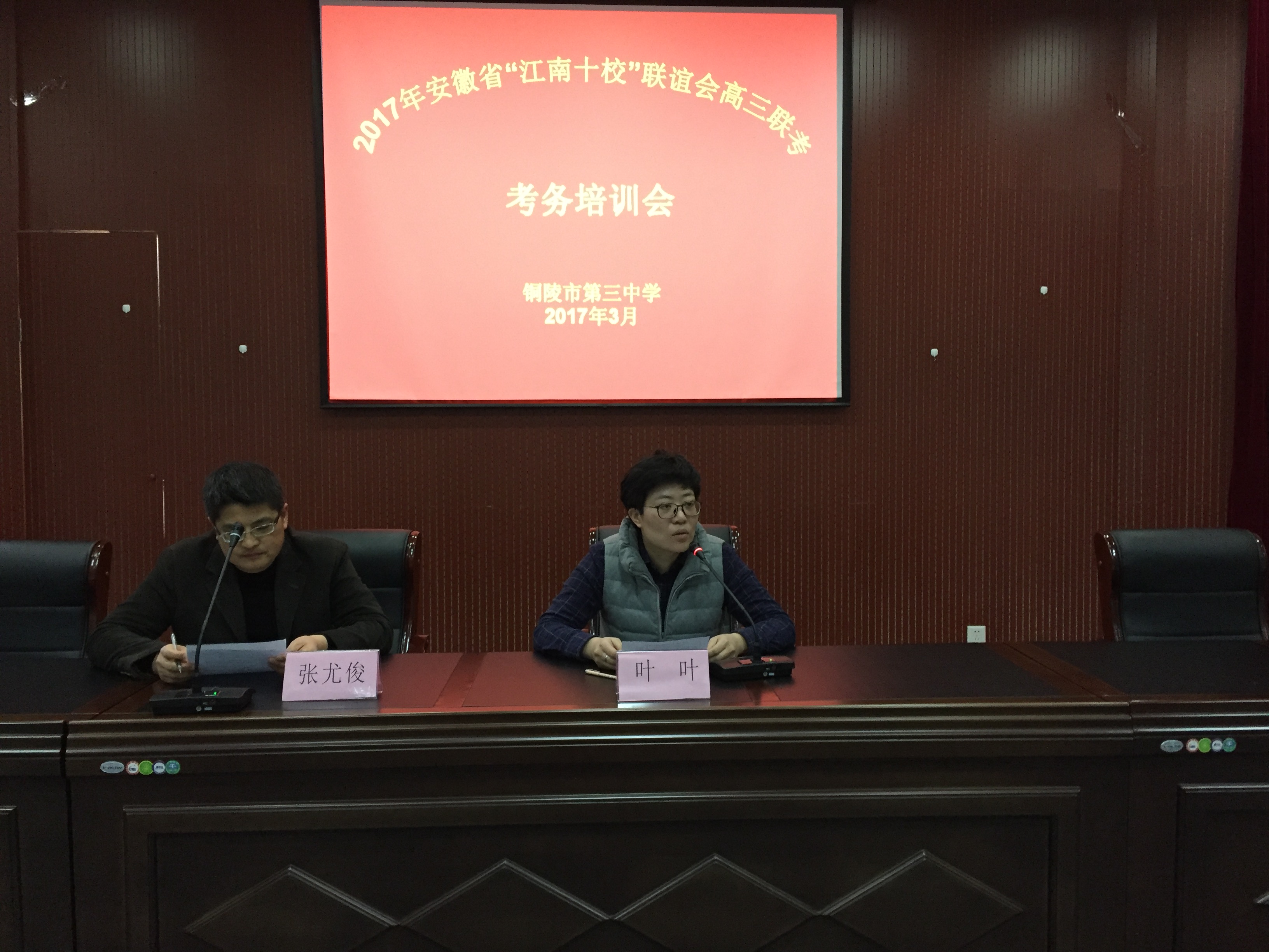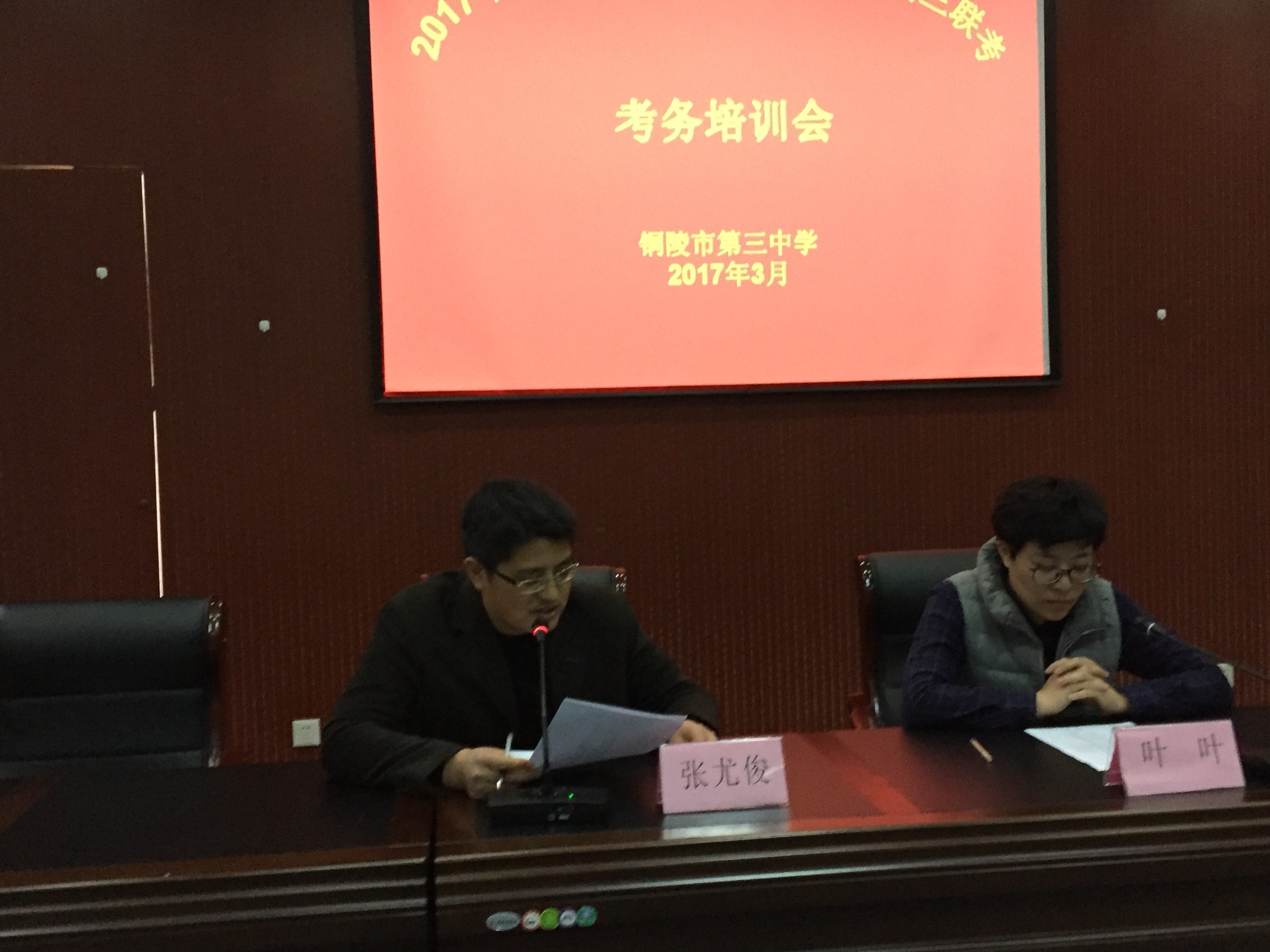 3月9日下午,我校在校多功能厅组织全体“江南十校”考务人员召开铜陵市第三中学2017年安徽省“江南十校”联谊会高三联考考务培训会。副校长叶叶、校教务处主任张尤俊出席了本次考务培训会,本次会议由校教务处张尤俊主任主持。