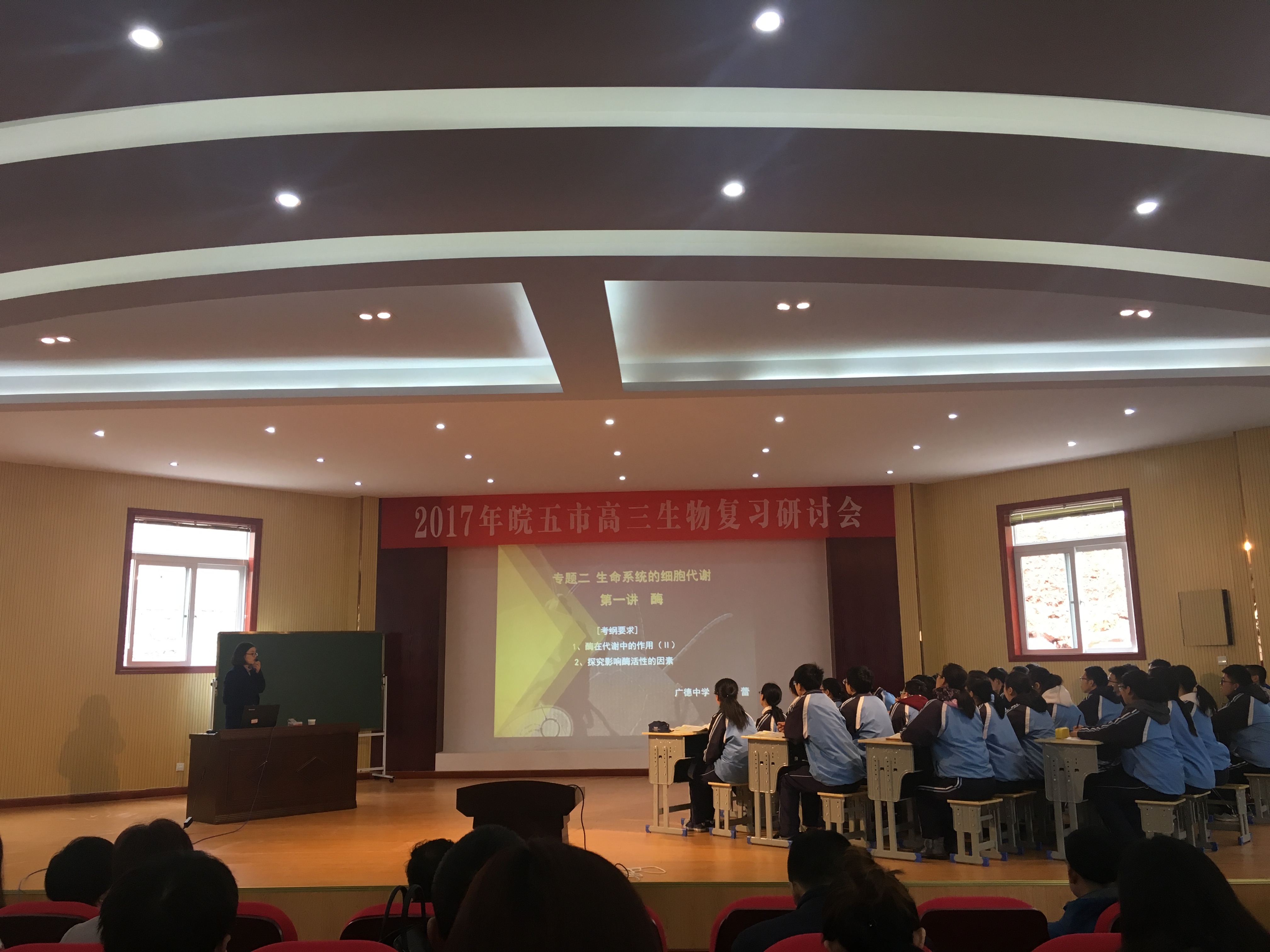 3月17日~19日,在山清水秀、人杰地灵、徽州文化底蕴深厚的绩溪,举办了由宣城市教育局主办、绩溪县教体局承办的2017年“皖五市”高三生物高考复习研讨会。来自芜湖、宣城、阜阳、滁州以及铜陵五市的教研员以及部分高三生物教师近百人汇聚一堂,共同交流与研讨高三后期有效复习备考的策略与方法。我校高三生物备课组的四位教师在组长陆彦萍老师的带领下参加了此次研讨会。