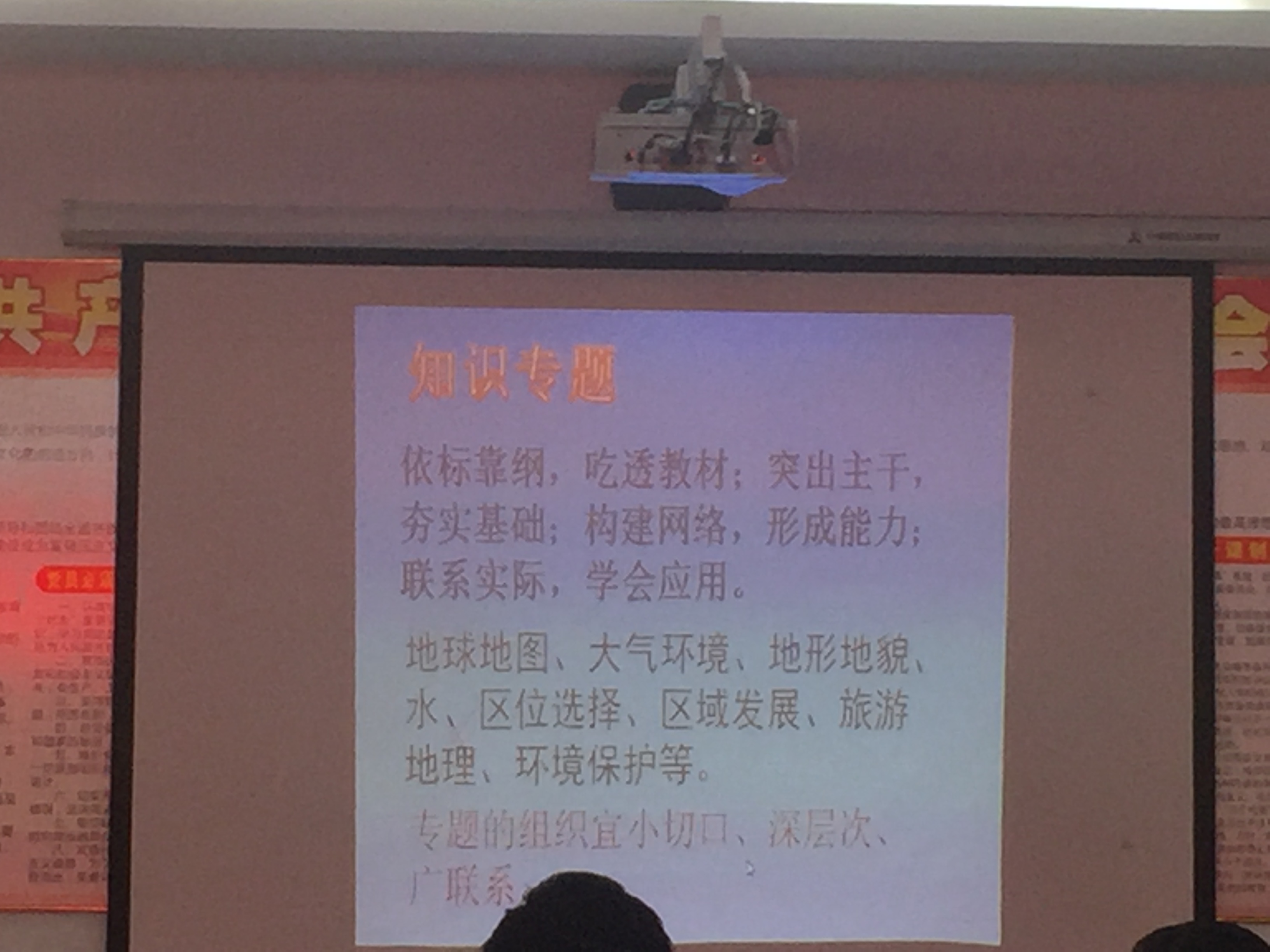 宣城中学的郑林慧老师《二轮复习策略研究》的专题报告,主要向大家介绍宣中二轮复习的具体做法,带给我们很多启示。二轮复习主要以专题(知识专题、试题专题、能力专题)的形式,依标靠纲,吃透教材,突出主干,夯实基础,构建网络,形成能力,联系实际,学会应用。面对备课任务繁重的压力,高三地理组的同事把备课任务分解,各有分工,整合共用。
