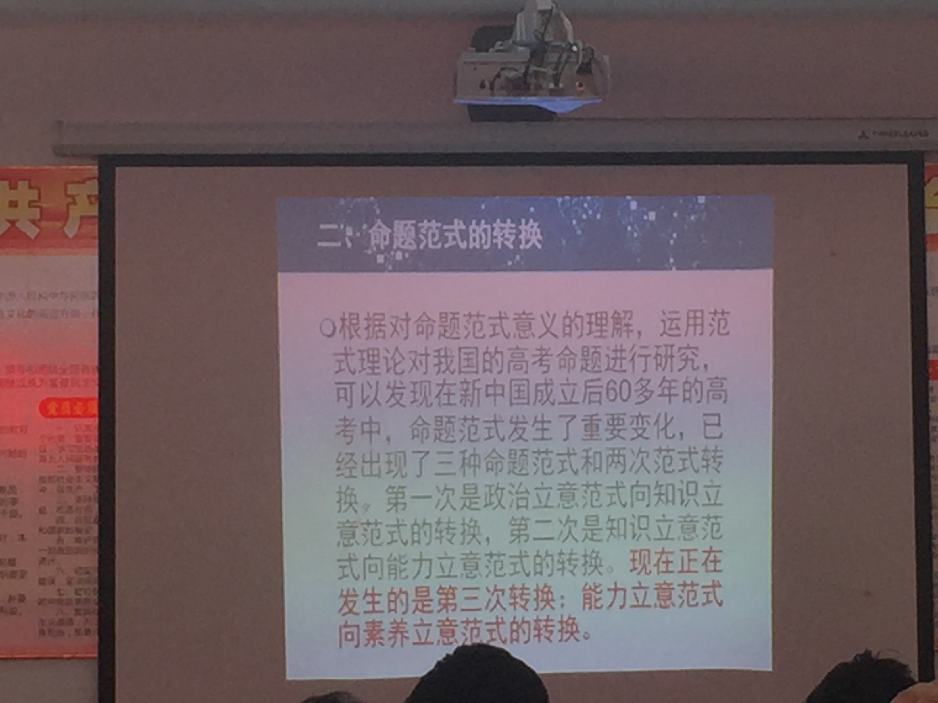 最后由宣城市教研员翟军老师做《高考地理命题范式的变化》的专题报告,翟老师从宏观上分析了历年来高考命题的变化,高考命题也从政治立意、知识立意、能力立意到现在素养立意方向,不断地转变。把握高考命题范式的变化,站准具体的位置,有助于我们对高考的研究,也便于我们把握复习的方向。方向、站位比方法更为重要。
