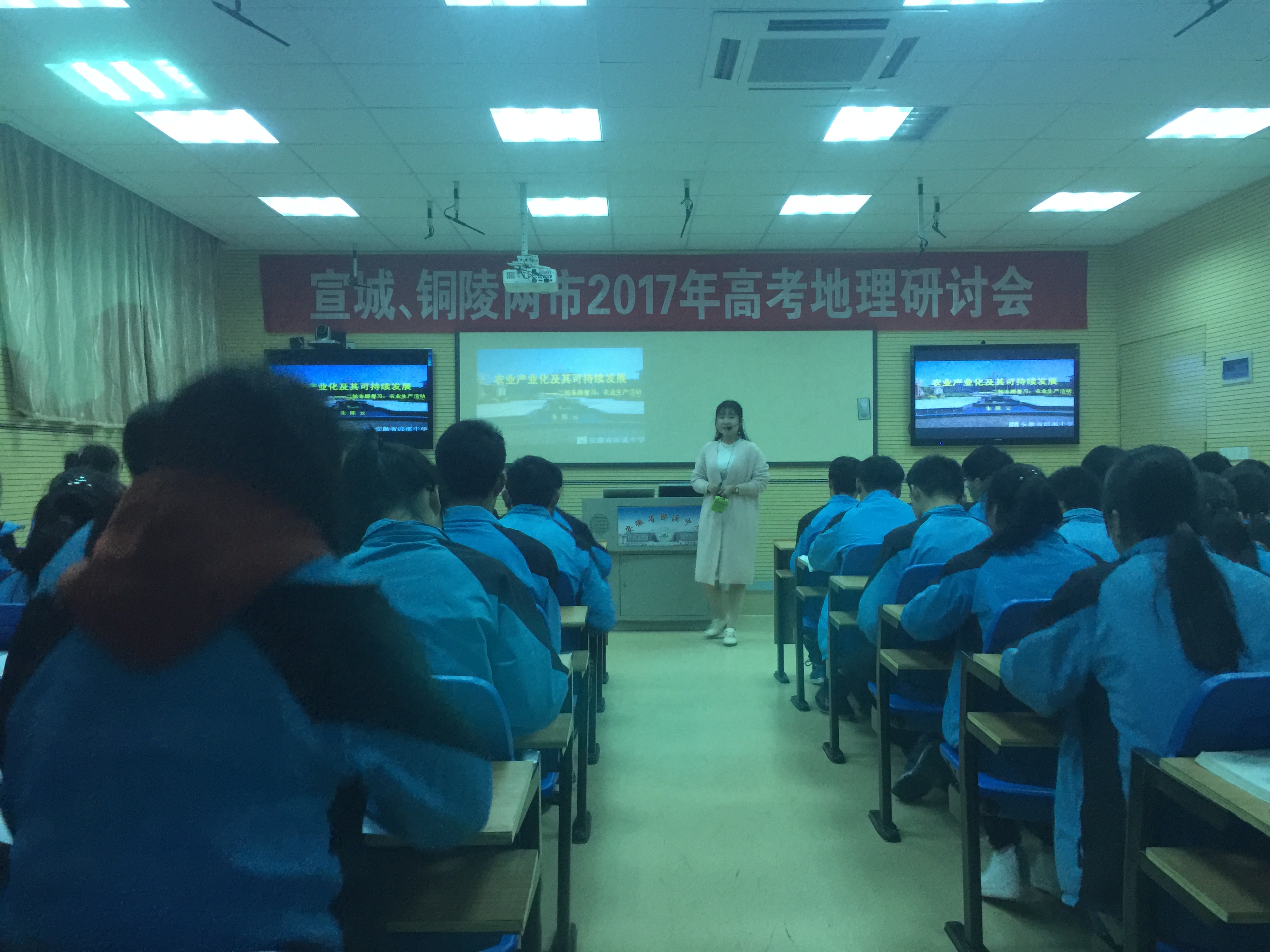 11日的二轮复习展示课是郎溪中学的朱陈云老师执教,课题为《农业生产与可持续发展》。朱老师结合高考试题,先是确定专题的主线:1、农业区位因素(综合分析和深入分析);2、农业生产活动对地理环境的影响;3、农业可持续发展的方法和途径;再确定专题复习的具体策略,然后带领学生“撸起袖子,加油干”。整堂课教学思路清晰,学生明错纠错,教师总结提高,效果明显。