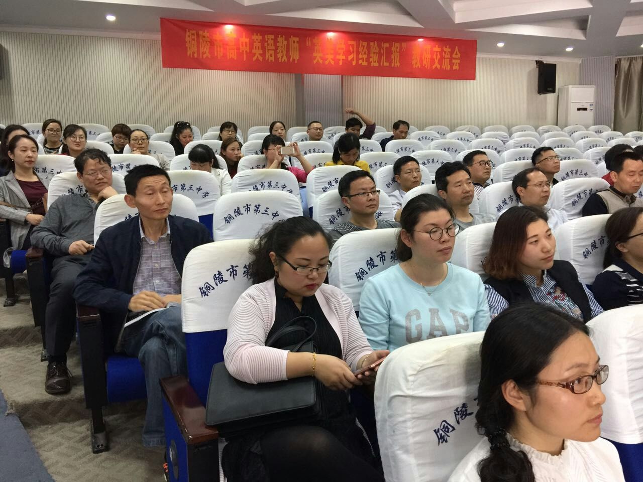 为了促进交流学习,共享学习成果,由市教研室主办的高中英语老师“英美学习经验汇报”活动于4月18日下午在我校多功能厅如期举行。来自全市各个学校的高中英语老师和部分初中英语老师聆听了我市有着国外工作和学习经历的四位老师精彩的报告。