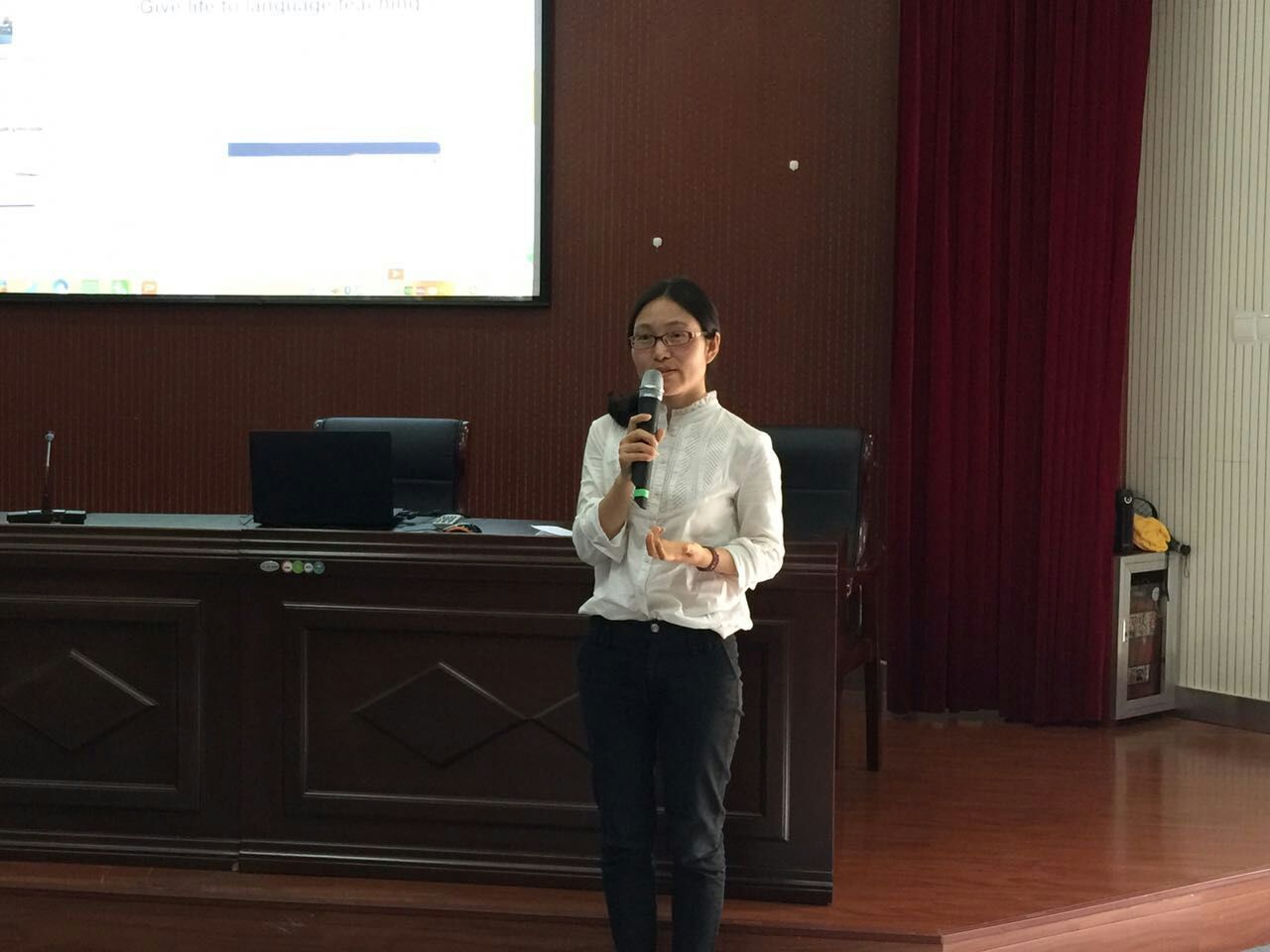 最后一位发言的老师是来自我校的杨卉卉老师。杨老师结合自己在英国的工作生活经历对课堂教学环境下英语的语言交际功能提出了独特的见解,并结合实际做出了一些有意义的实践。
