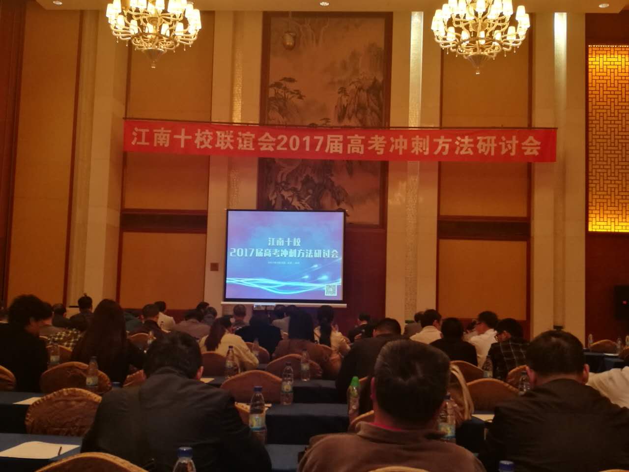 4月28日,江南十校联谊会在风景秀丽的池州九华山柯村举行2017届高考冲刺方法研讨会。校党委副书记吴翀、教务处主任张尤俊、高三年级部副主任潘鸣皋率我校高二、高三年级部分备课组长及骨干教师共二十余人参加会议,我校语文教研组组组长、高三语文备课组组长乔红胜老师代表我校在会上做高考语文冲刺阶段备考策略报告。