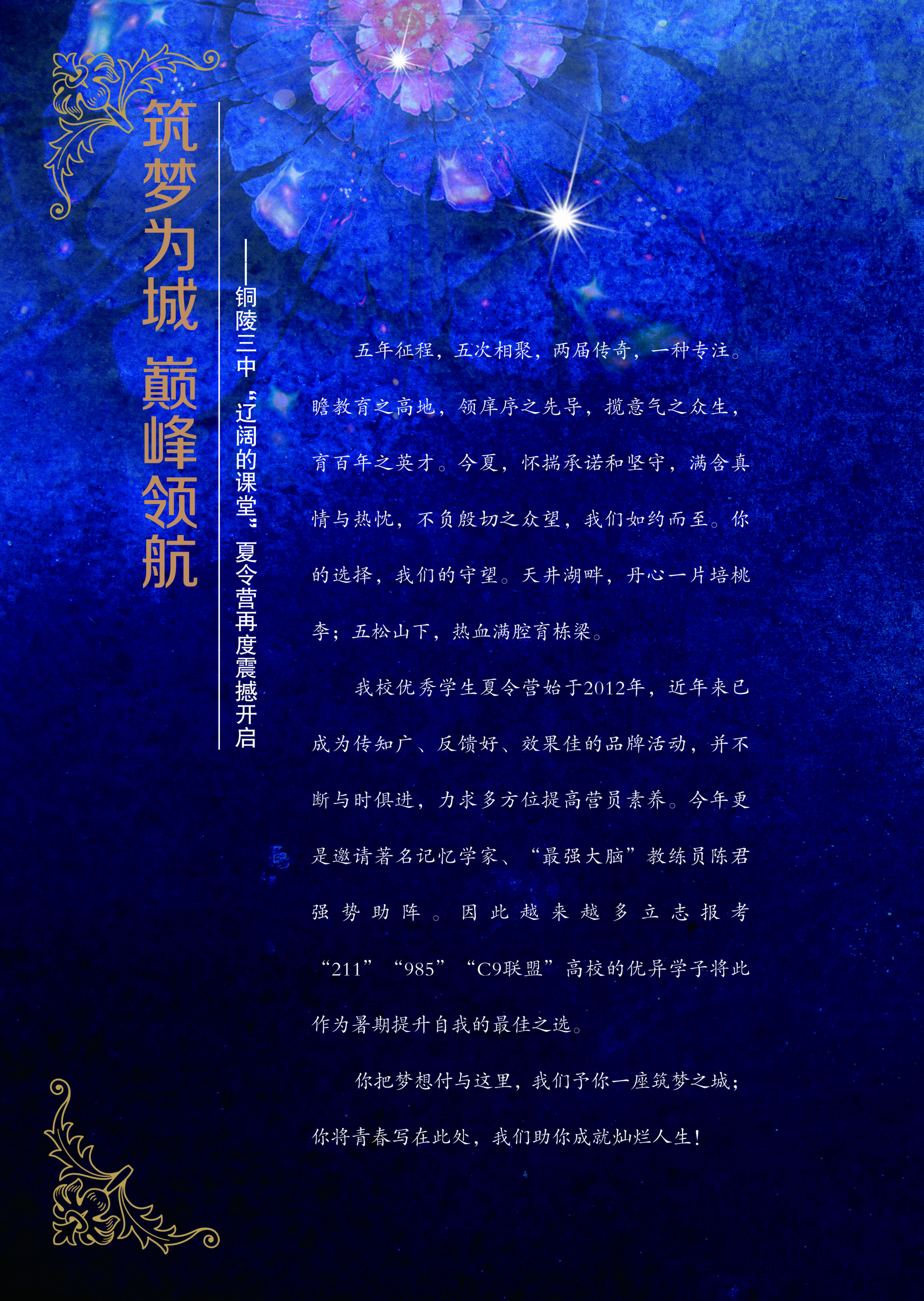 筑梦为城 巅峰领航——铜陵三中“辽阔的课堂”夏令营再度震撼开启!