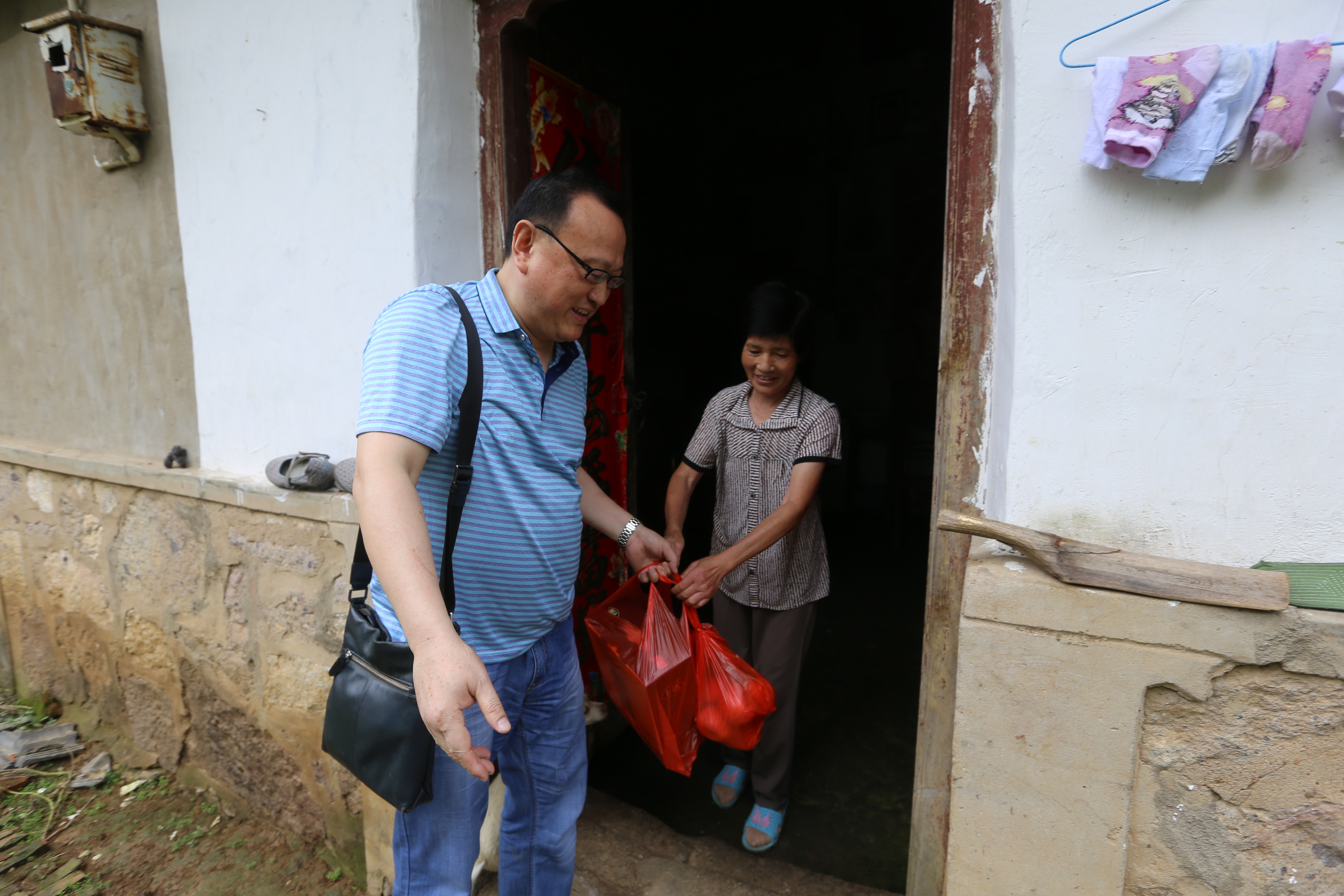 上午十点半,参加走访慰问活动的党员统一乘车聚集在义东村村委会门前,在党委书记的钟士标同志交嘱下,分别前往各自走访慰问的困难党员和群众家中。