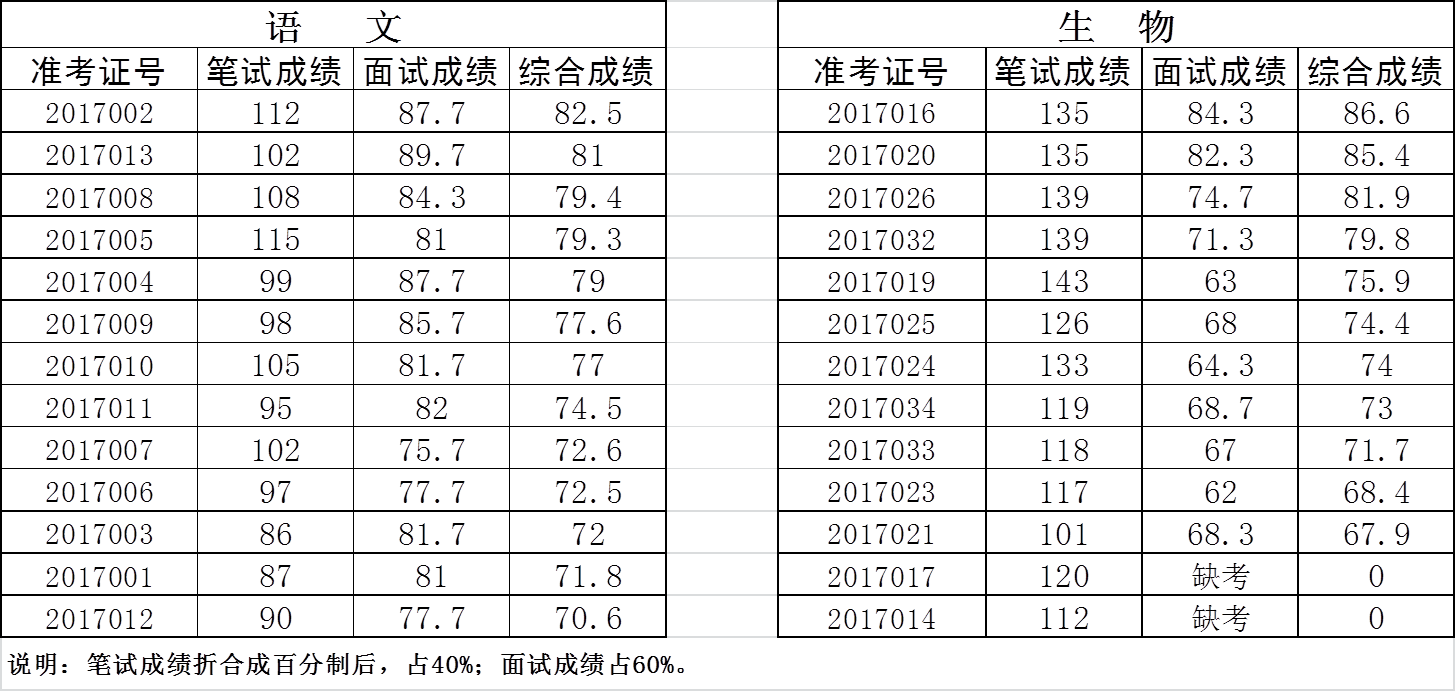 2017年铜陵市三中教师招聘考试综合成绩公示