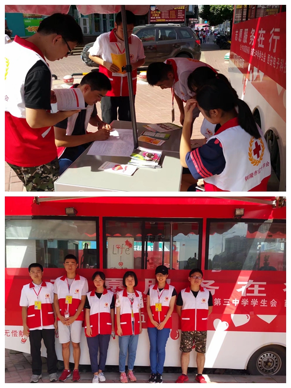 二、践行志愿服务精神。市三中学生在校期间网络志愿者注册率达90%,经常参加学校组织的文明创建、服务全市中小学生机器人大赛、爱心捐款等志愿服务和献爱心活动。利用高考后的暑假时间,部分2017届毕业生们加入铜陵市红十字志愿服务队,与“中国好人”黄军华女士一起,学习、宣传应急救护知识和技能,参加无偿献血宣传等志愿服务活动,感受好人力量,以实际行动弘扬“人道、博爱、奉献”的红十字精神!践行“奉献、友爱、互助、进步”的志愿服务精神!