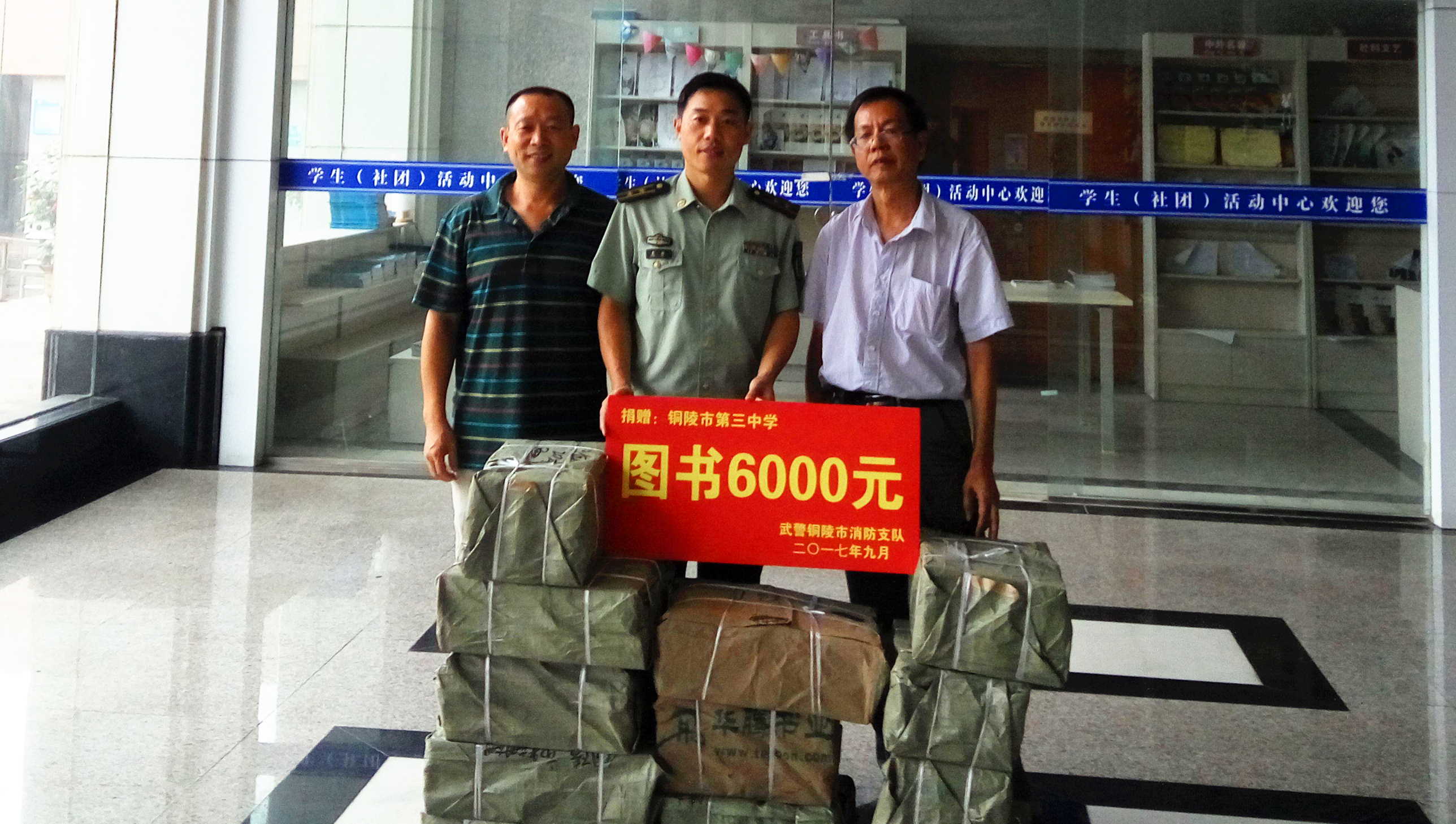 本校讯 9月7日,在第33个教师节来临之际,铜陵市武警消防支队政治处主任张辉一行到我校开展教师节慰问活动,向在教育一线辛勤耕耘的全体教职员工表示节日的祝贺和诚挚的祝福,赠送了图书。