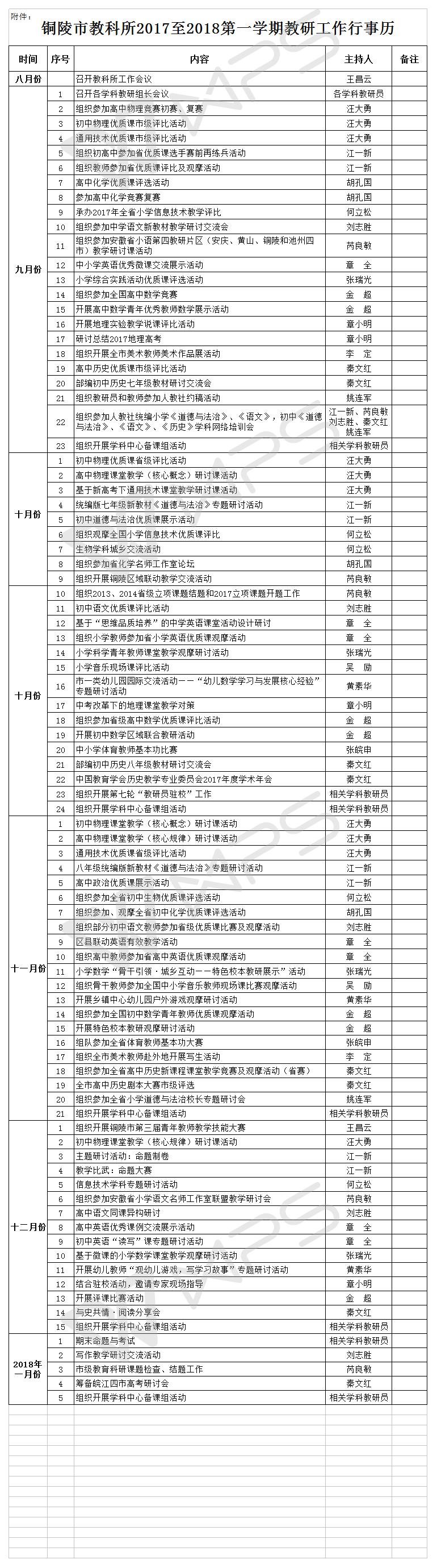 铜陵市教育局教科所 2017至2018第一学期教研工作行事历