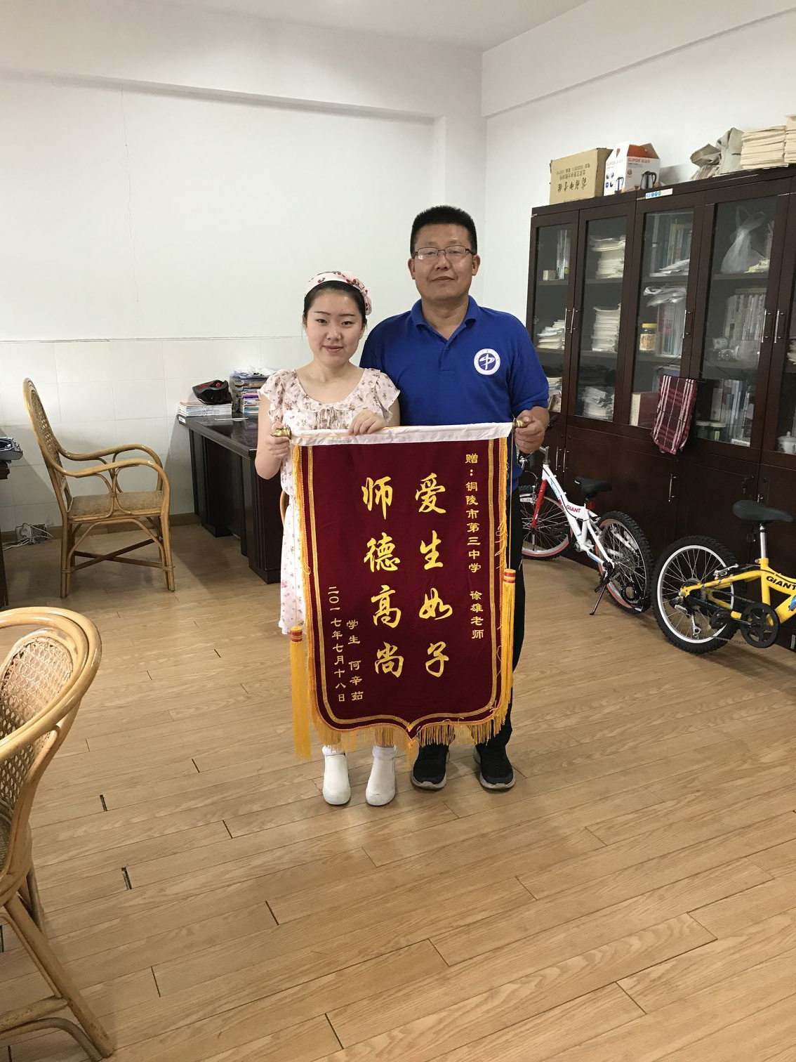 (何辛茹同学向徐雄老师表示感谢,该同学今年被复旦大学录取。)