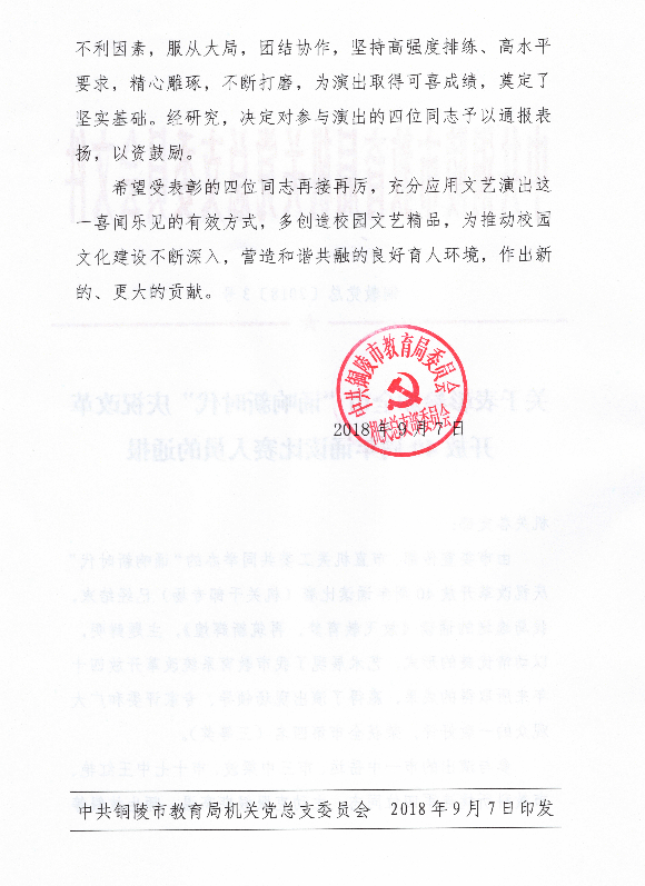 教育局发文表彰我校梁波老师