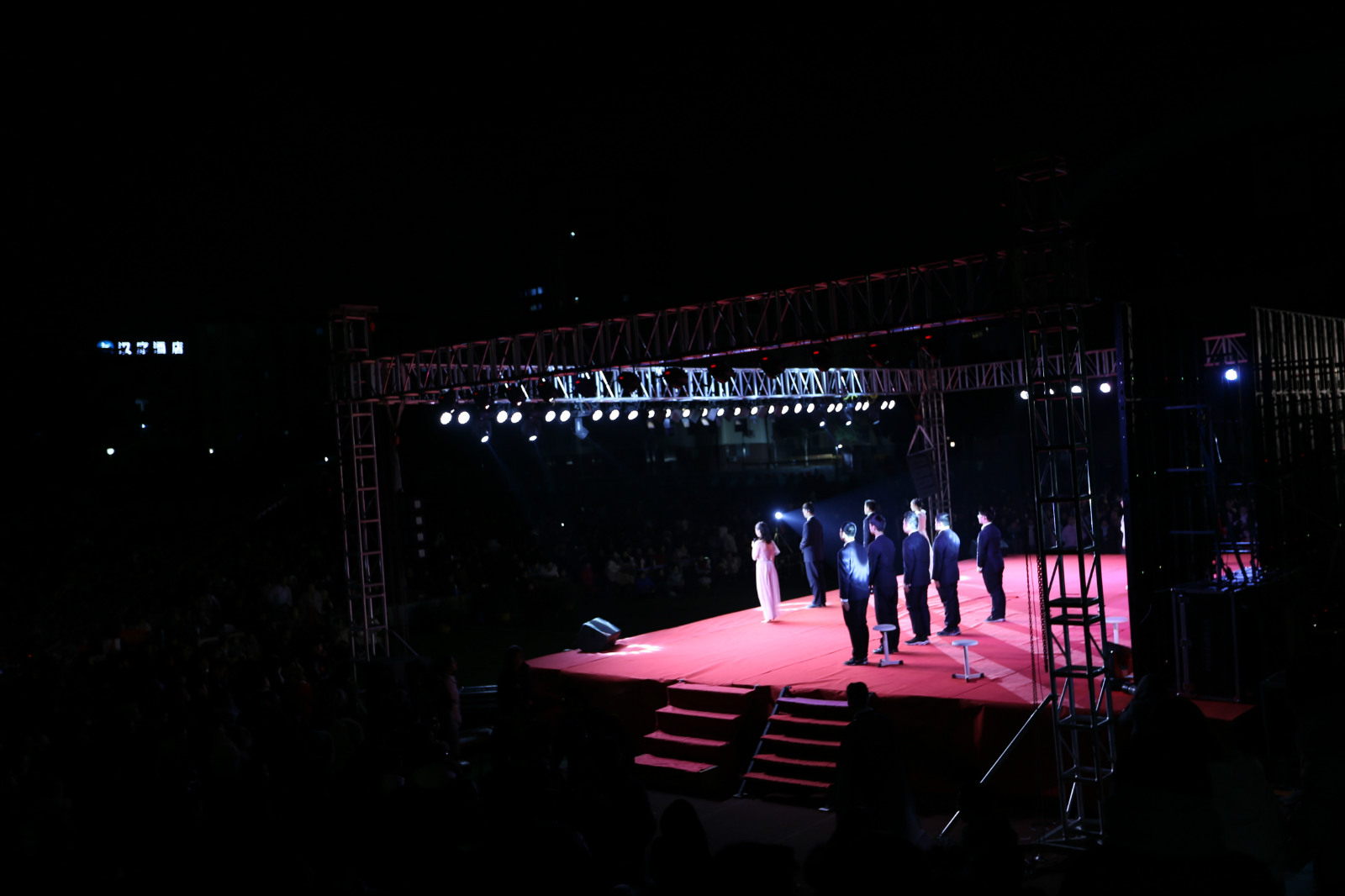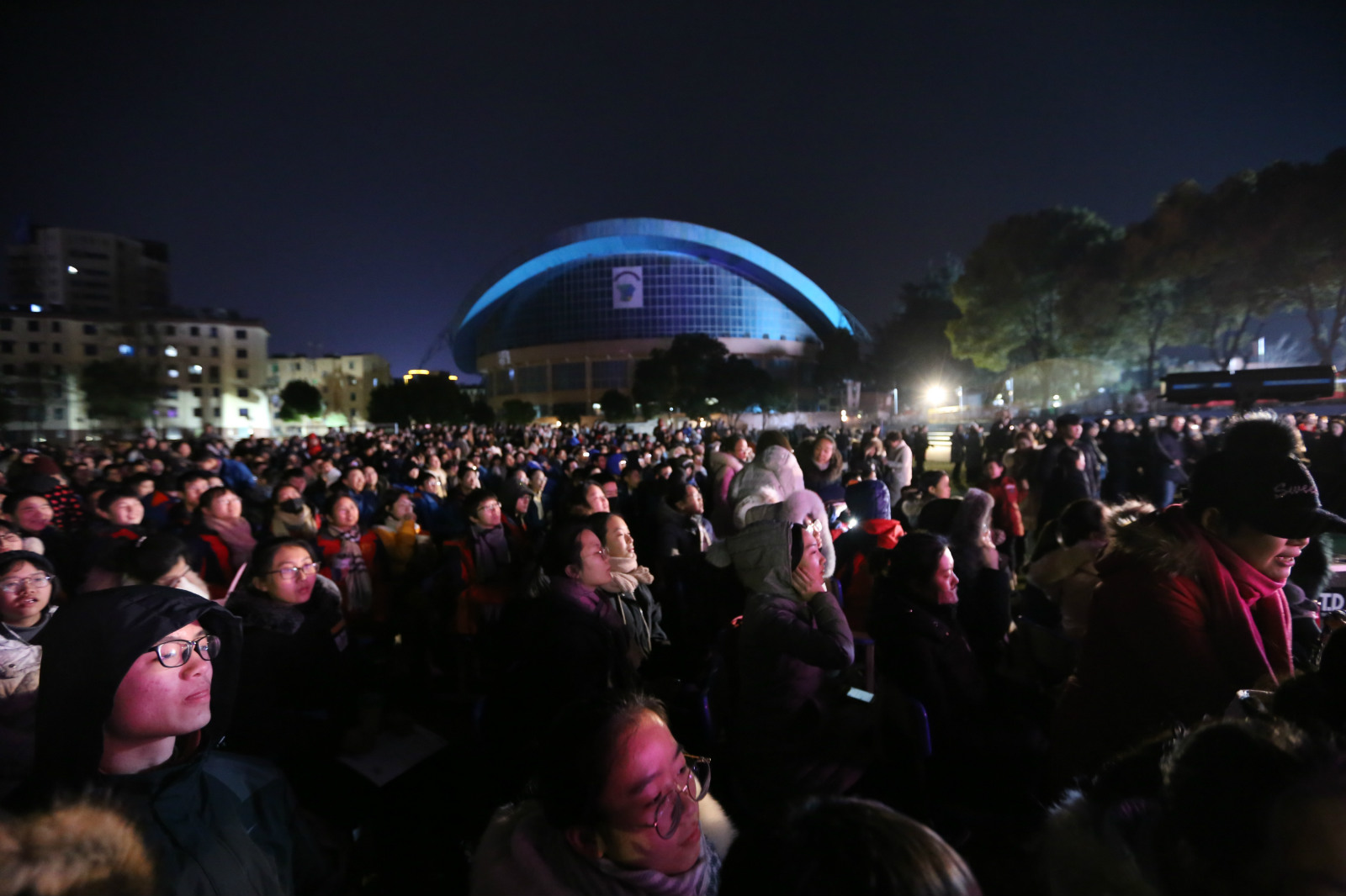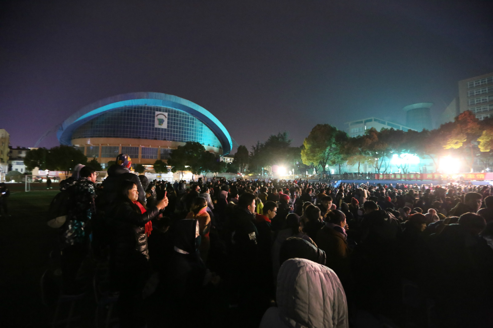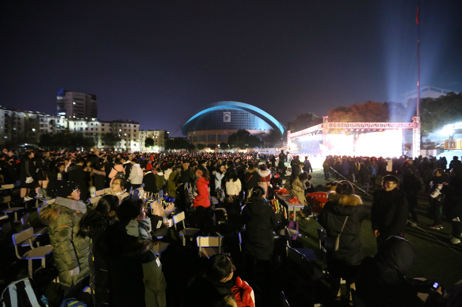 本校讯 寒冬已至,三中融融。12月29日晚上六时整,我校欢歌嘹亮,劲舞翻腾——第26届校园文化艺术节暨“不忘初心,厚德笃学”迎新晚会在校操场隆重举行。歌声响亮夜空,晚会现场有5千多观众,加上在线直播的3万5千多观众,本台晚会共吸引了全球4万多人共享视听盛宴。